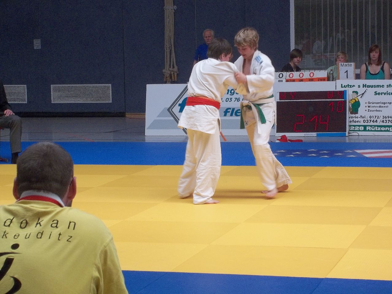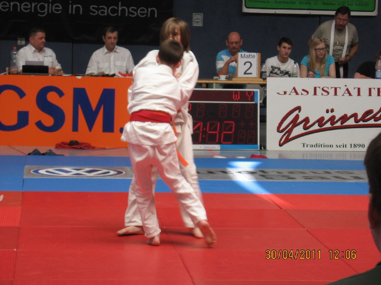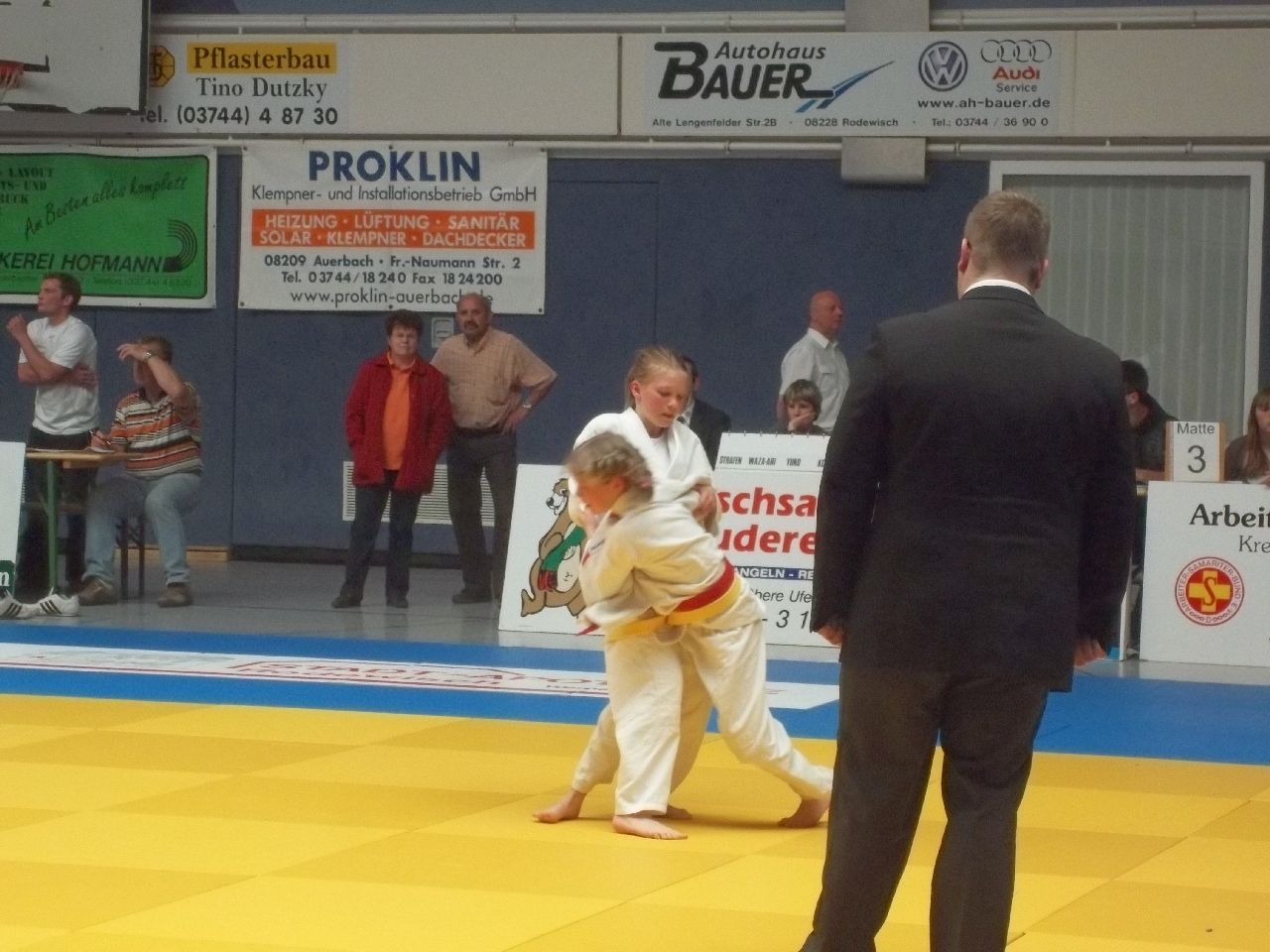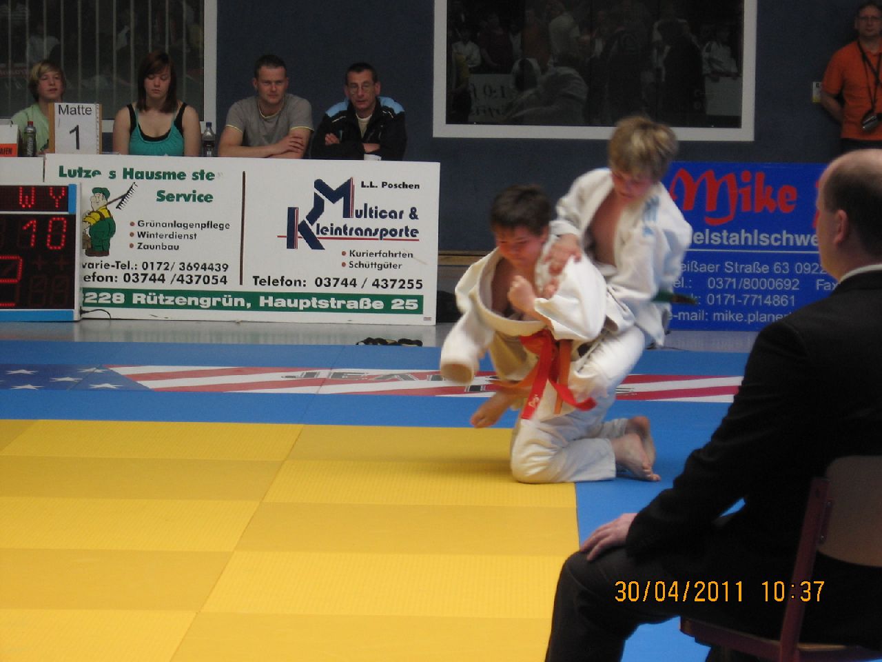 Den Vogel schoss Theodor Rößler (-37kg) ab. Nach anfänglichen Startproblemen, er musste noch 500g Übergewicht loswerden, konnte er Marcel Bielstein (PSV Leipzig) mit Seio Nage bezwingen. Er traf dann beim Kampf um den Einzug ins Finale auf Philip Seiler (PSV Glauchau) welchen er mit einer Sankaku-Technik am Boden besiegte. Im Finale stand Theo dann einen alten Bekannten, Sepp Beyer vom TSV Schlettau, gegenüber. In einem sehr harten Kampf, Beide schenkten sich nichts, konnte der Gornauer Judoka einmal mit Kata-Seio-Nage und das andere mal mit O-Soto-Otoshi das Blatt für sich wenden und stand am Ende ganz oben auf dem Treppchen.