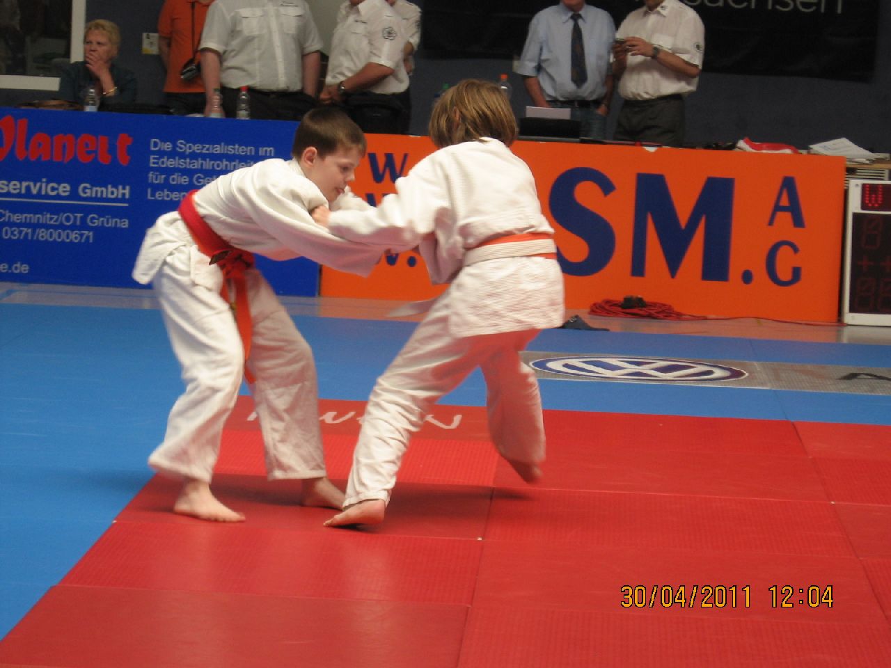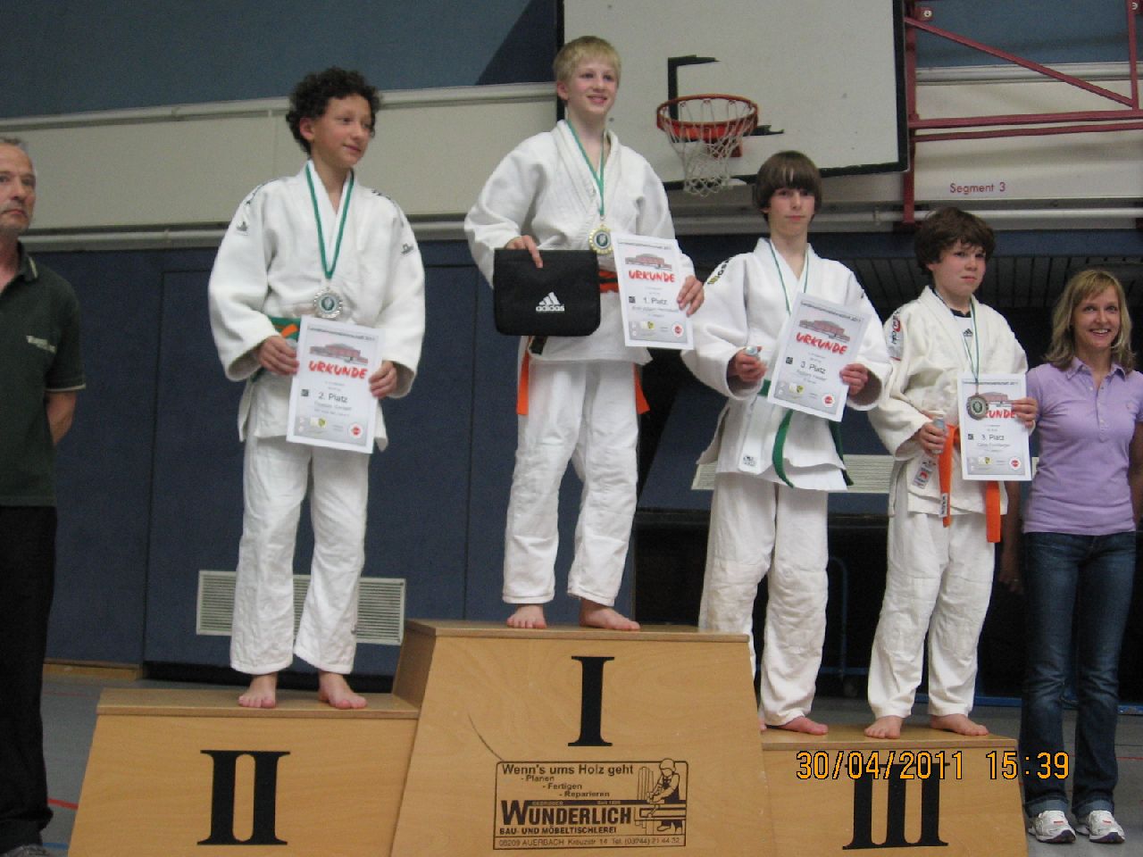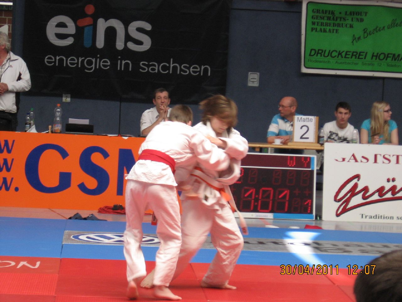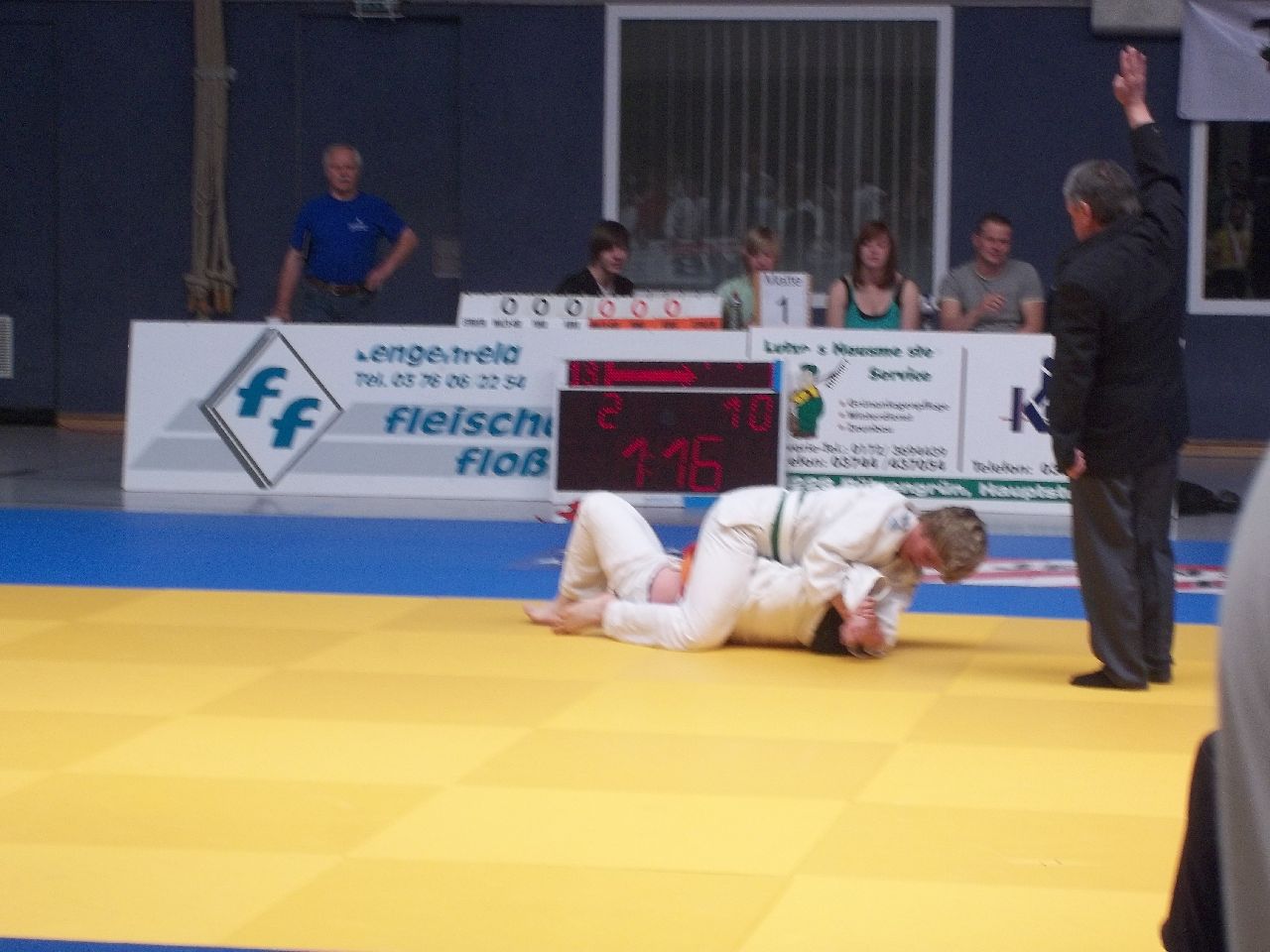 Den Vogel schoss Theodor Rößler (-37kg) ab. Nach anfänglichen Startproblemen, er musste noch 500g Übergewicht loswerden, konnte er Marcel Bielstein (PSV Leipzig) mit Seio Nage bezwingen. Er traf dann beim Kampf um den Einzug ins Finale auf Philip Seiler (PSV Glauchau) welchen er mit einer Sankaku-Technik am Boden besiegte. Im Finale stand Theo dann einen alten Bekannten, Sepp Beyer vom TSV Schlettau, gegenüber. In einem sehr harten Kampf, Beide schenkten sich nichts, konnte der Gornauer Judoka einmal mit Kata-Seio-Nage und das andere mal mit O-Soto-Otoshi das Blatt für sich wenden und stand am Ende ganz oben auf dem Treppchen.