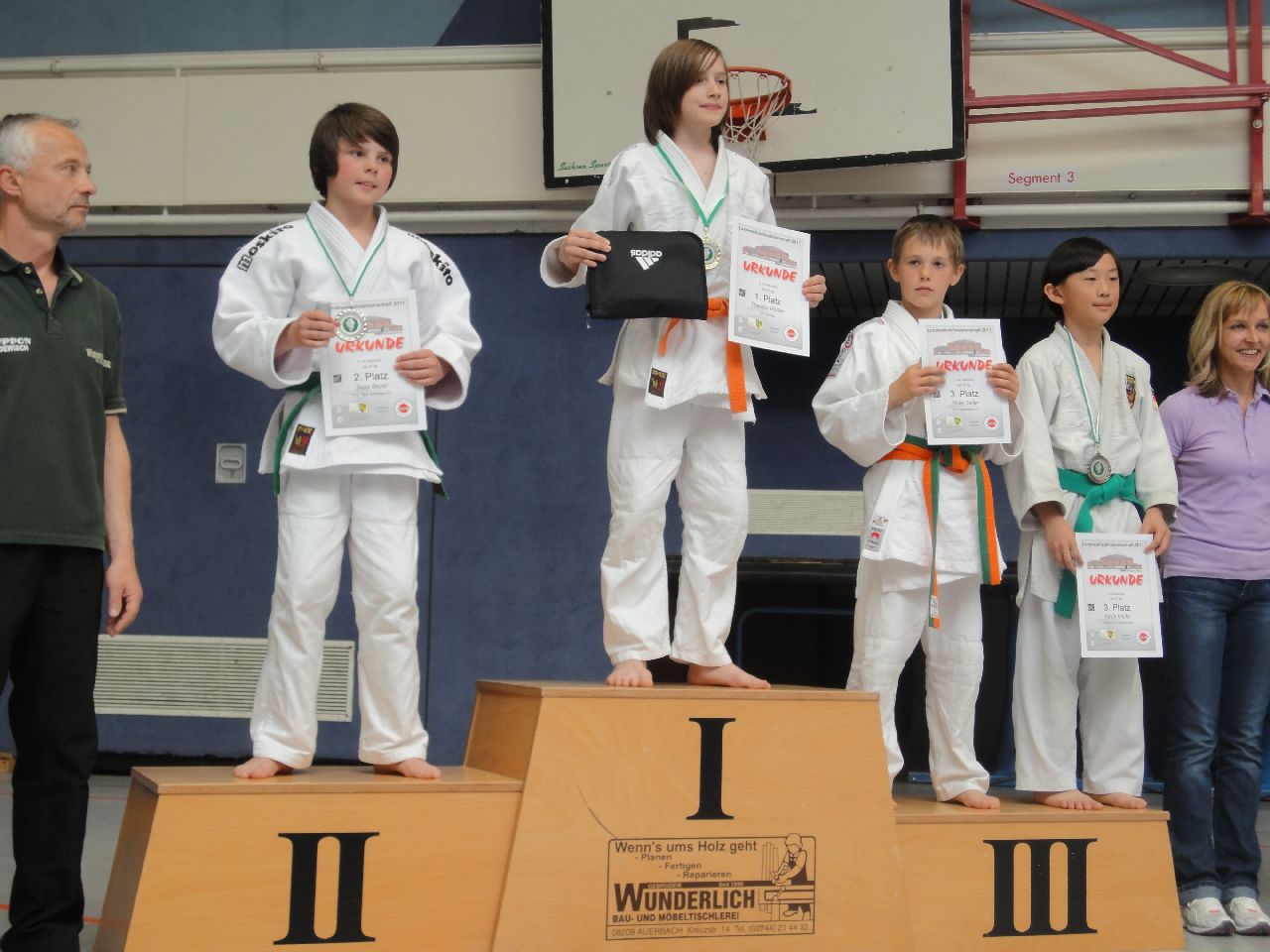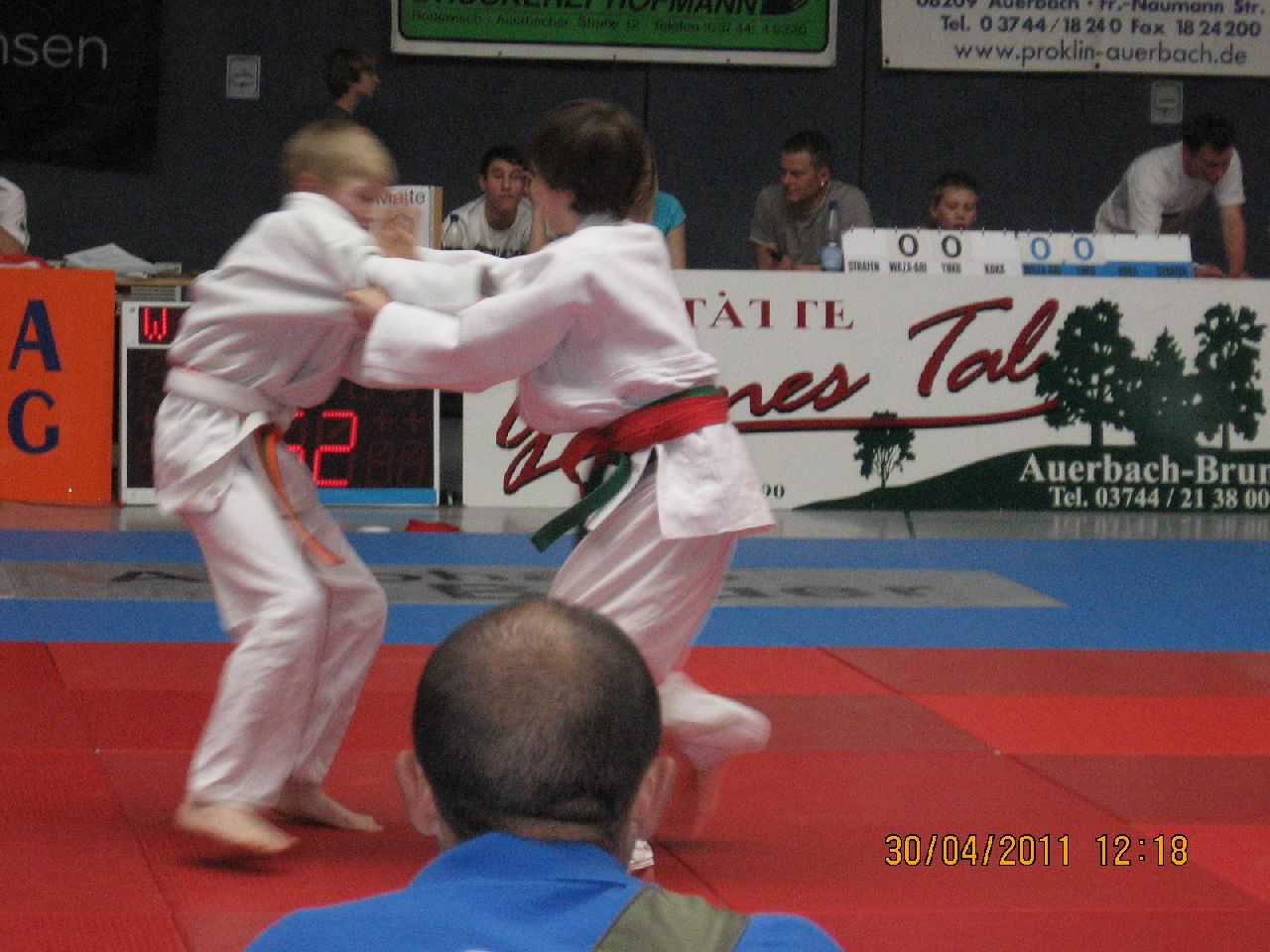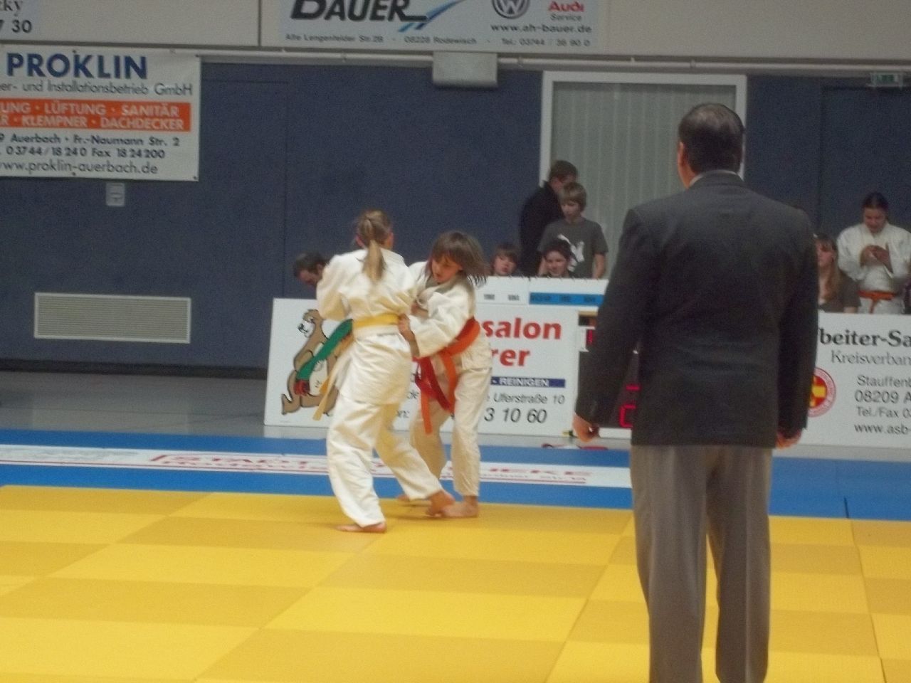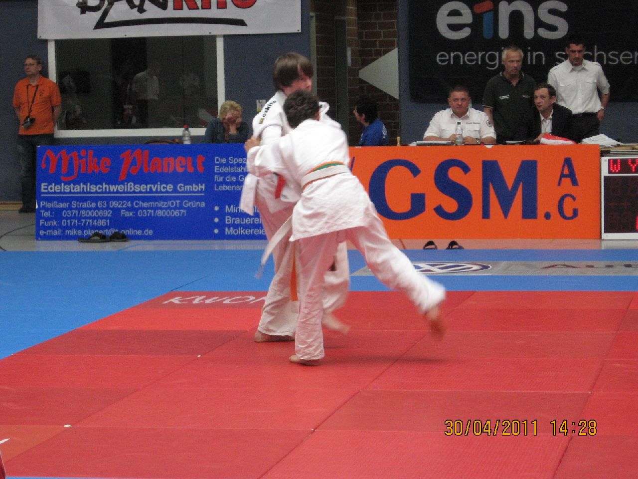 Den Vogel schoss Theodor Rößler (-37kg) ab. Nach anfänglichen Startproblemen, er musste noch 500g Übergewicht loswerden, konnte er Marcel Bielstein (PSV Leipzig) mit Seio Nage bezwingen. Er traf dann beim Kampf um den Einzug ins Finale auf Philip Seiler (PSV Glauchau) welchen er mit einer Sankaku-Technik am Boden besiegte. Im Finale stand Theo dann einen alten Bekannten, Sepp Beyer vom TSV Schlettau, gegenüber. In einem sehr harten Kampf, Beide schenkten sich nichts, konnte der Gornauer Judoka einmal mit Kata-Seio-Nage und das andere mal mit O-Soto-Otoshi das Blatt für sich wenden und stand am Ende ganz oben auf dem Treppchen.