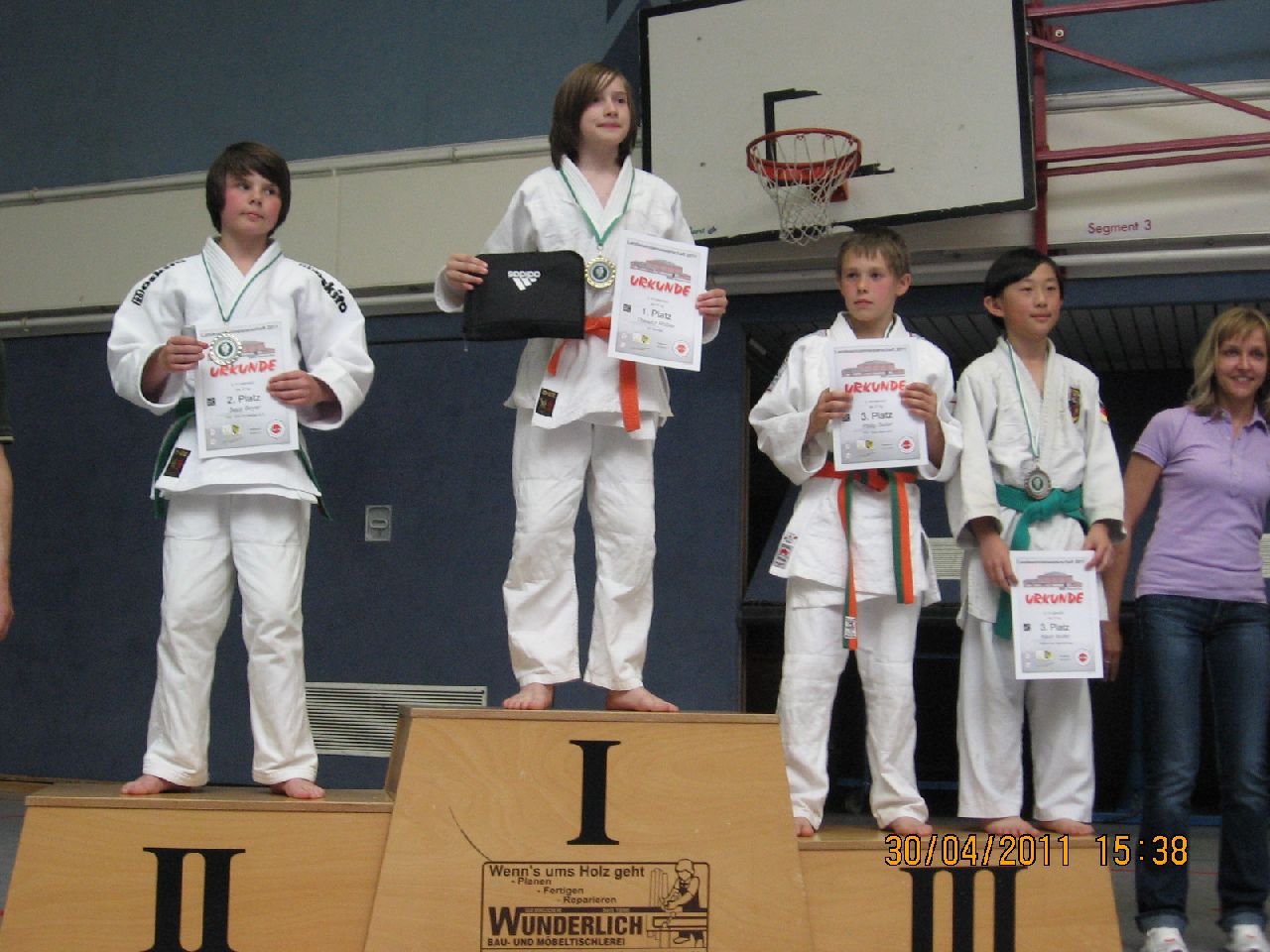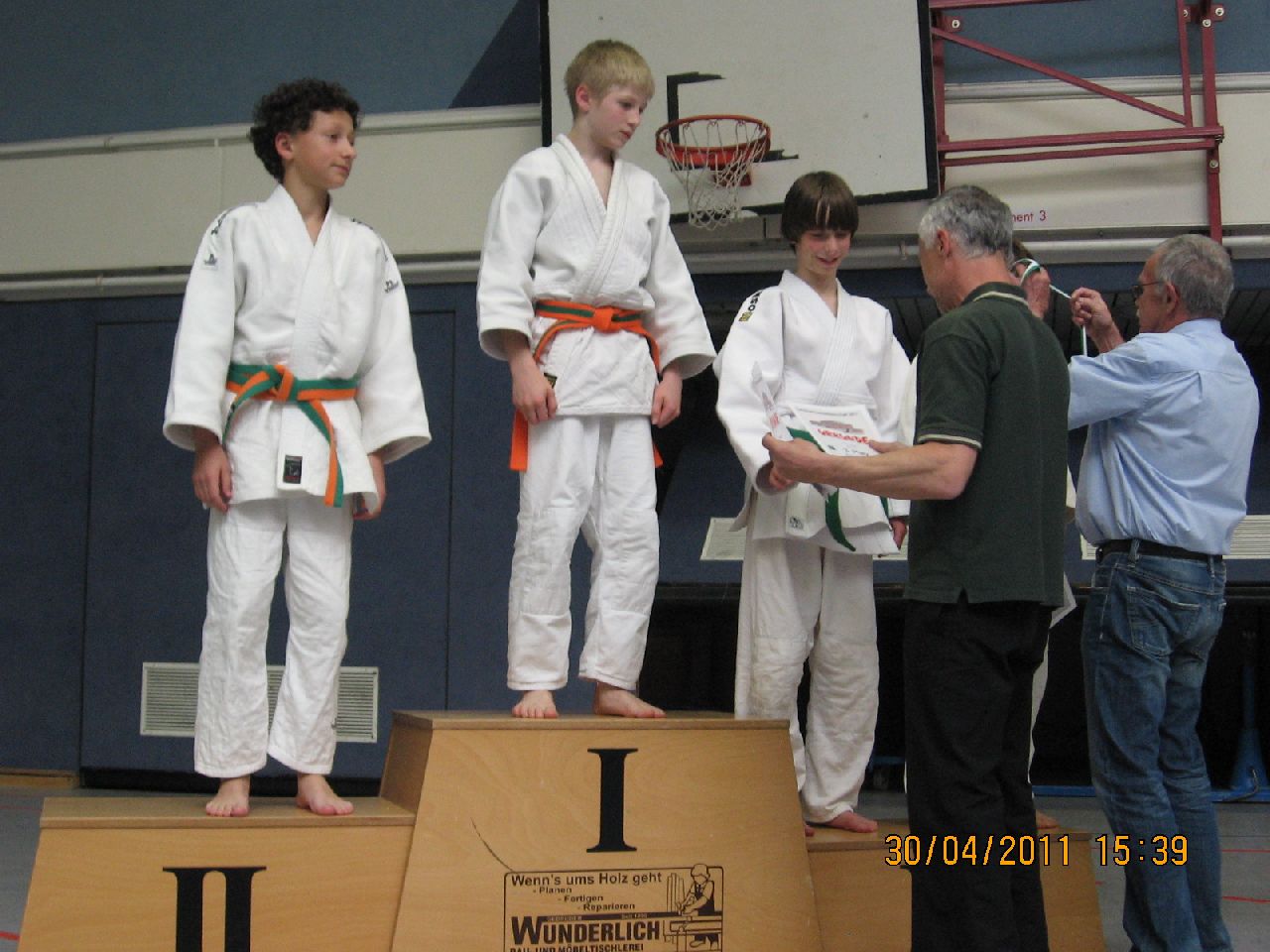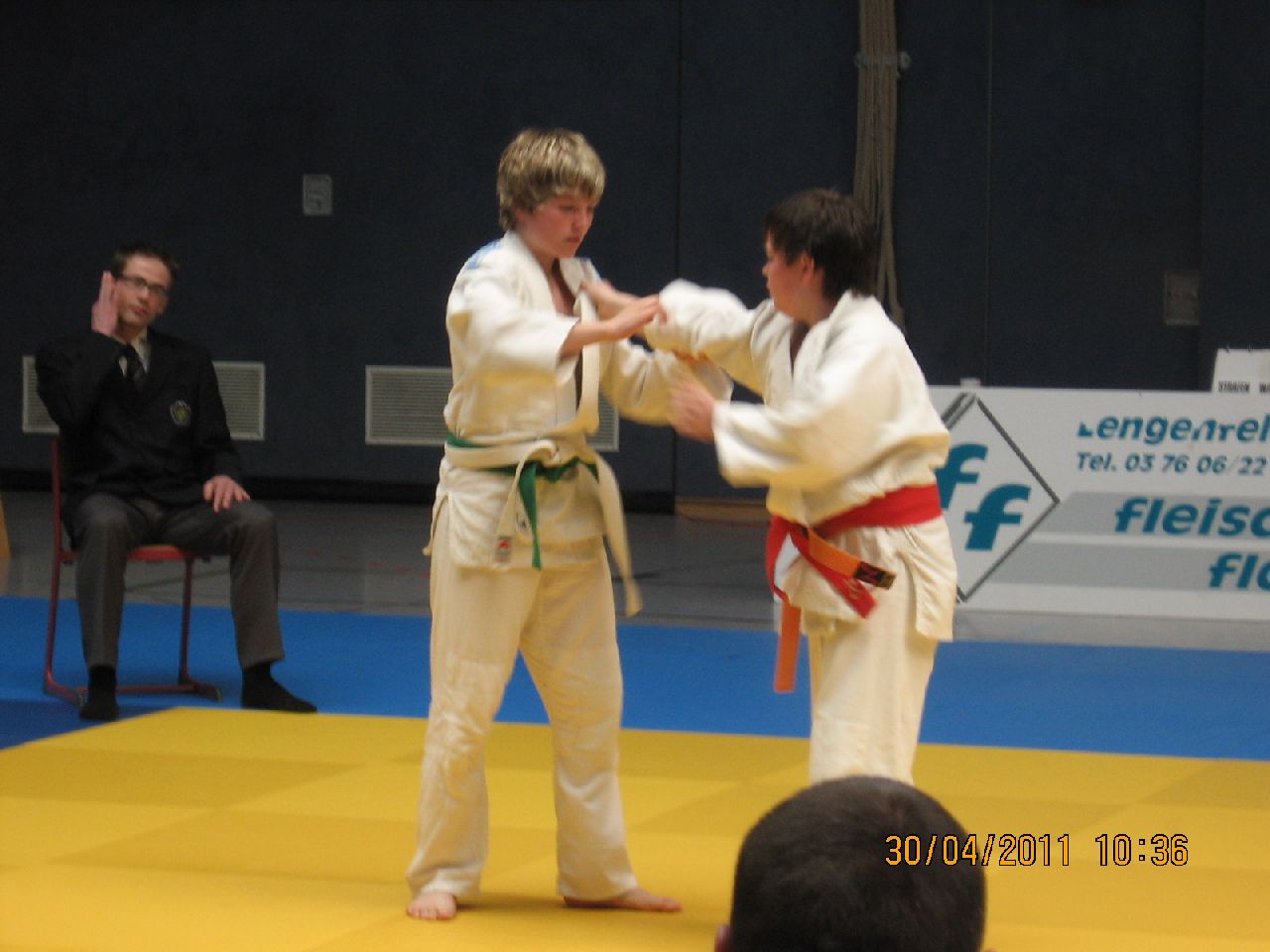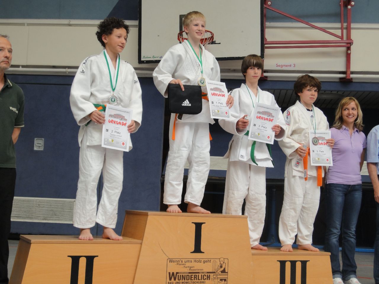 Den Vogel schoss Theodor Rößler (-37kg) ab. Nach anfänglichen Startproblemen, er musste noch 500g Übergewicht loswerden, konnte er Marcel Bielstein (PSV Leipzig) mit Seio Nage bezwingen. Er traf dann beim Kampf um den Einzug ins Finale auf Philip Seiler (PSV Glauchau) welchen er mit einer Sankaku-Technik am Boden besiegte. Im Finale stand Theo dann einen alten Bekannten, Sepp Beyer vom TSV Schlettau, gegenüber. In einem sehr harten Kampf, Beide schenkten sich nichts, konnte der Gornauer Judoka einmal mit Kata-Seio-Nage und das andere mal mit O-Soto-Otoshi das Blatt für sich wenden und stand am Ende ganz oben auf dem Treppchen.