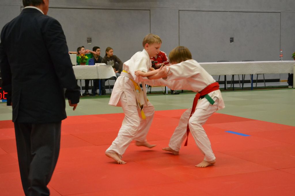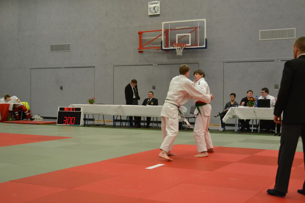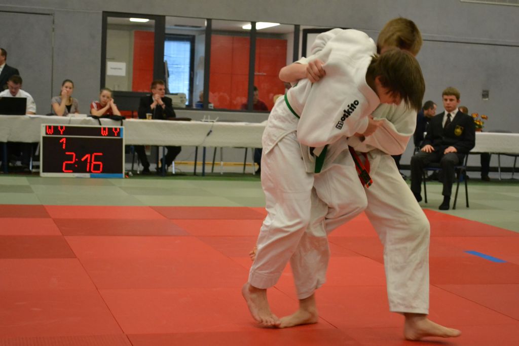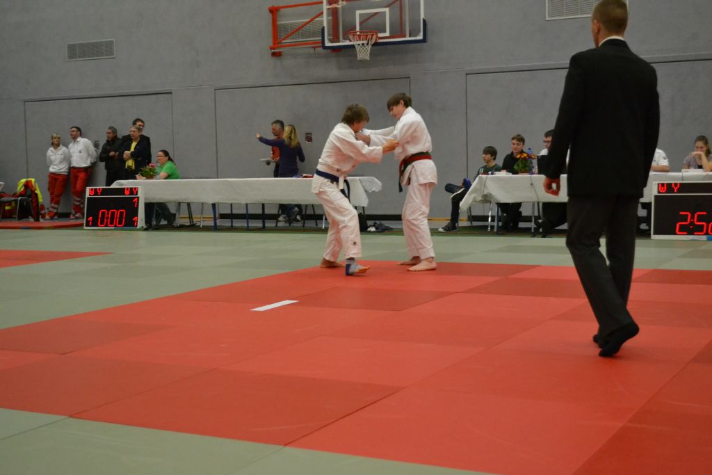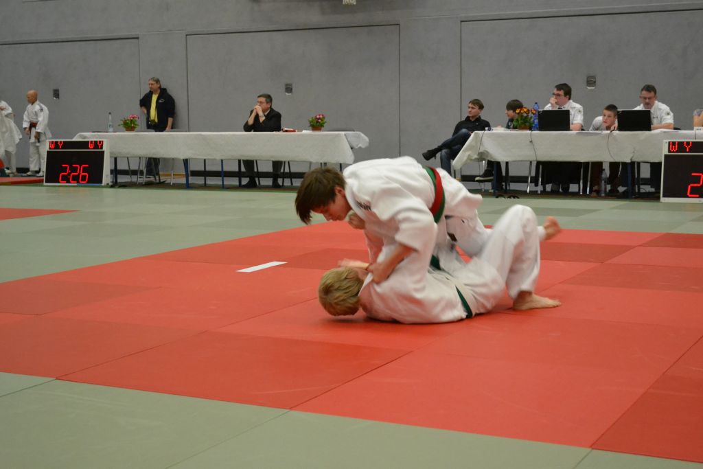 Am Sonnabend hieß es für die Jugendlichen der U15 „Hajime“. Für uns standen Lea Reuter (-44kg), Linus Thriemer (-34kg) und Theodor Rößler (-55kg) auf der Matte. Bei Lea machte sich der enorme Trainingsausfall der letzten Wochen, bedingt durch eine Erkrankung, bemerkbar. Sie kam leider nicht über die Vorrunde hinaus. Linus zeigte keine schlechte Leistung, musste jedoch im Kampf um Platz 3 dem Rodewischer John Roth den Vorrang lassen. Einzig Theodor Rößler, welcher diesmal im Limit -55kg kämpfen musste, konnte sich auf dem Treppchen postieren. Durch Siege über Scholz (PSV Plauen), Blechschmidt (JSC Stotternheim, Mitteldeutscher Meister 2012!), Höppner (Delitzscher Sportfüchse) und Käppler (PSV Kamenz) schaffte er den Einzug ins Finale. Hier traf der Gornauer auf Oliver Schulz vom PSV Eisenach. Dieses spannende Duell, welches über die gesamte Wettkampfzeit ging, konnte der Eisenacher Judoka mit Waza-Ari für sich entscheiden.