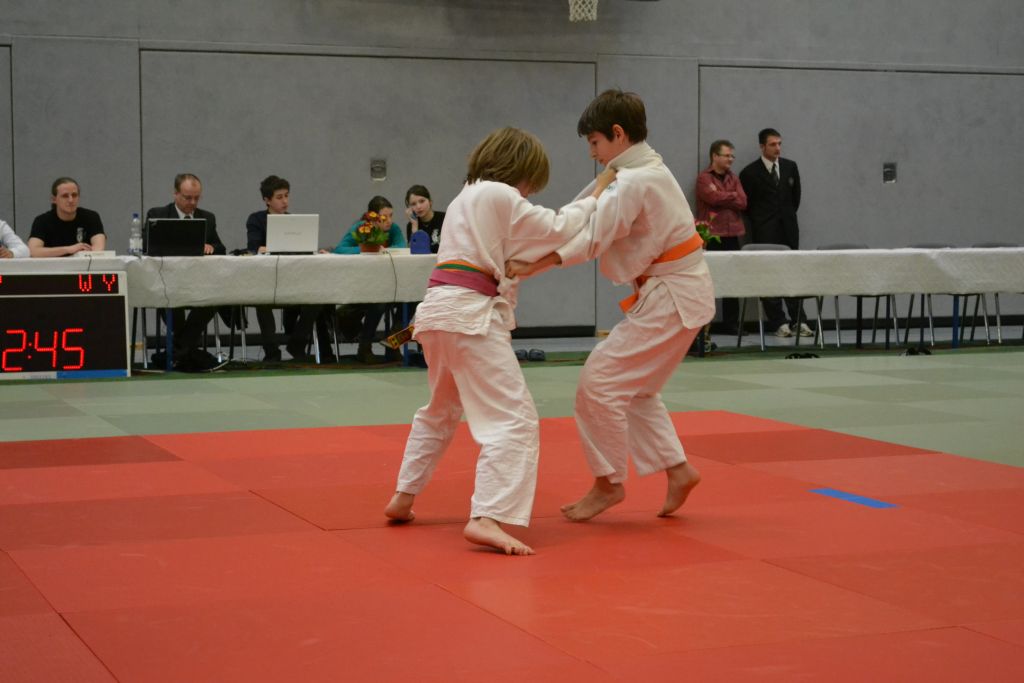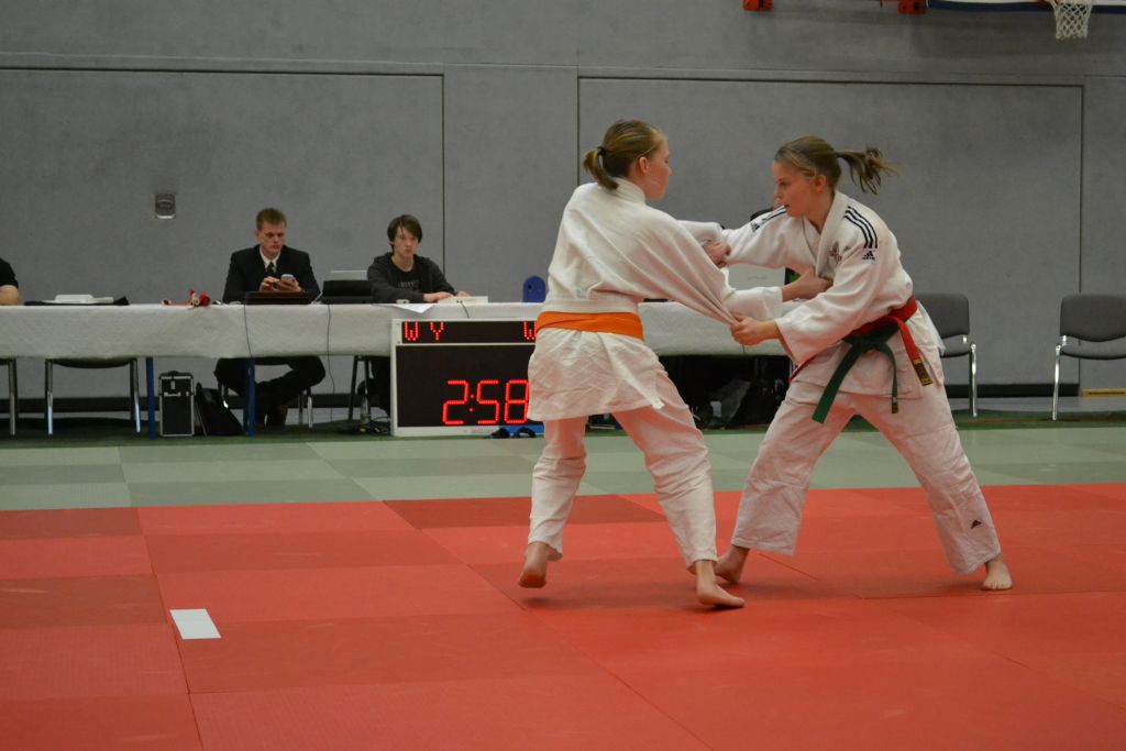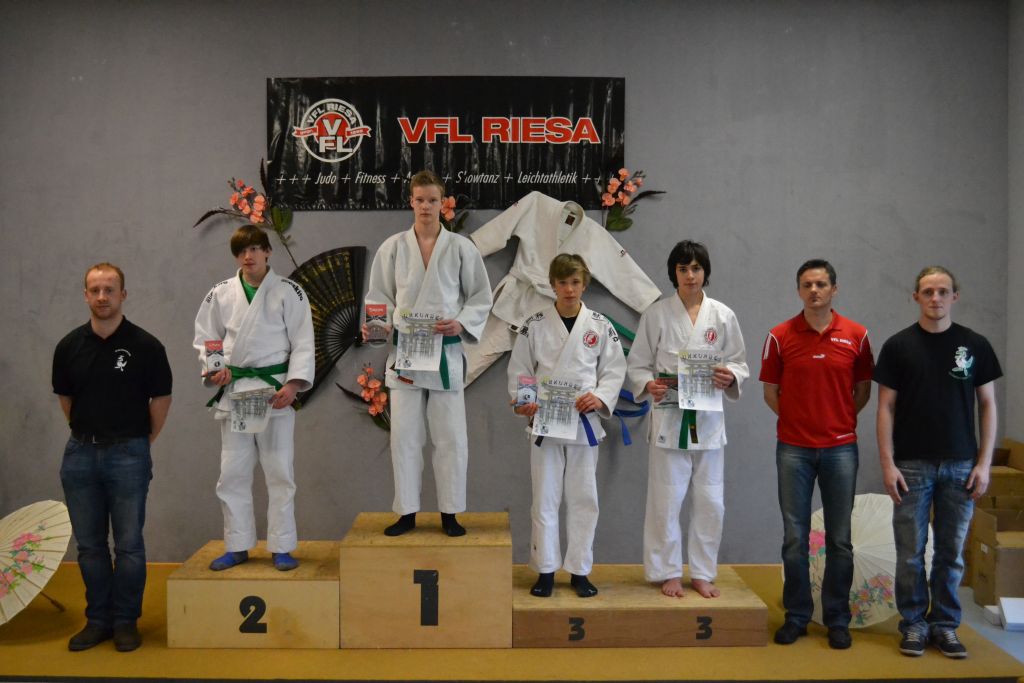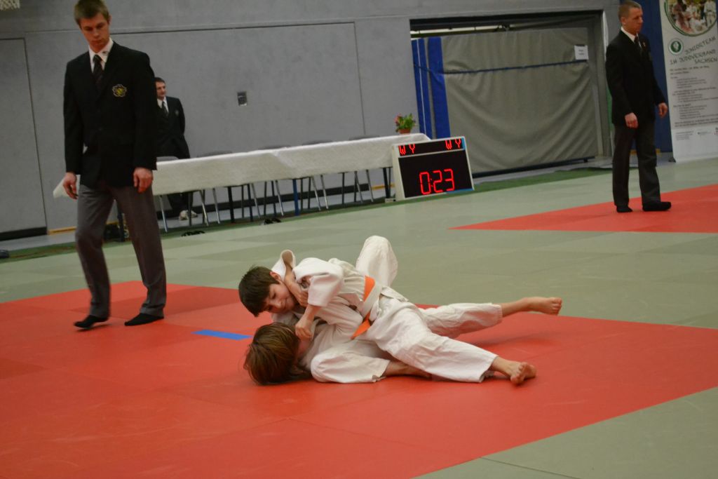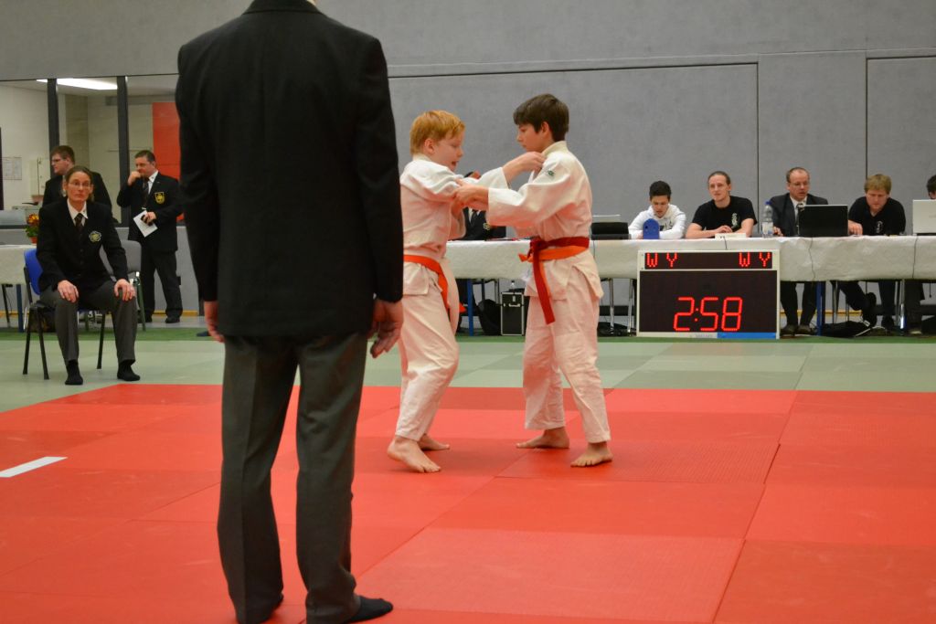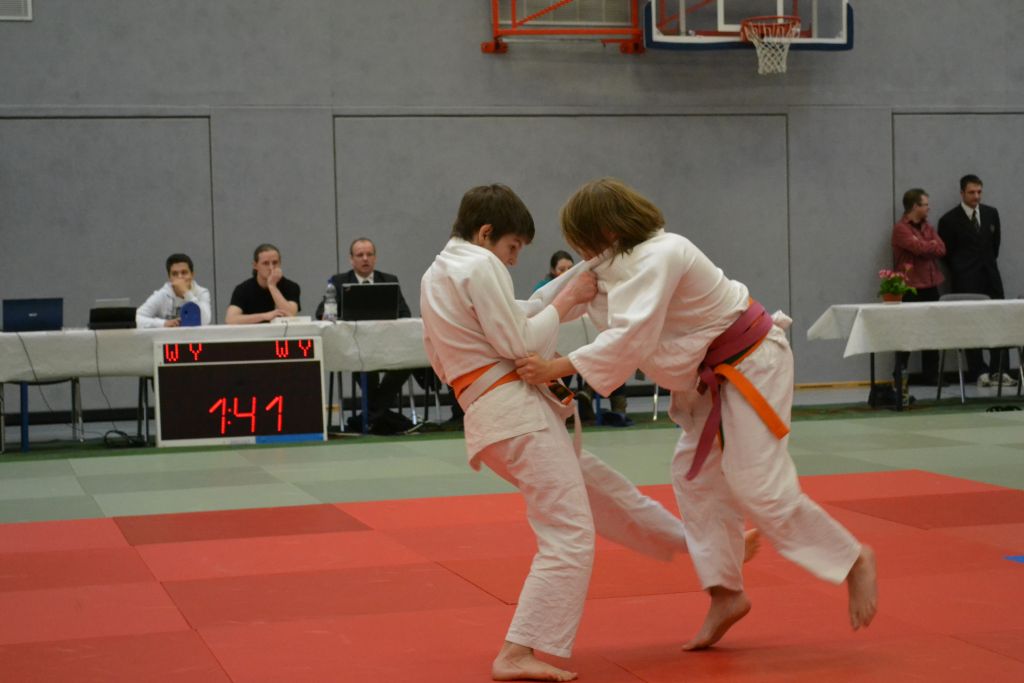 Am Sonnabend hieß es für die Jugendlichen der U15 „Hajime“. Für uns standen Lea Reuter (-44kg), Linus Thriemer (-34kg) und Theodor Rößler (-55kg) auf der Matte. Bei Lea machte sich der enorme Trainingsausfall der letzten Wochen, bedingt durch eine Erkrankung, bemerkbar. Sie kam leider nicht über die Vorrunde hinaus. Linus zeigte keine schlechte Leistung, musste jedoch im Kampf um Platz 3 dem Rodewischer John Roth den Vorrang lassen. Einzig Theodor Rößler, welcher diesmal im Limit -55kg kämpfen musste, konnte sich auf dem Treppchen postieren. Durch Siege über Scholz (PSV Plauen), Blechschmidt (JSC Stotternheim, Mitteldeutscher Meister 2012!), Höppner (Delitzscher Sportfüchse) und Käppler (PSV Kamenz) schaffte er den Einzug ins Finale. Hier traf der Gornauer auf Oliver Schulz vom PSV Eisenach. Dieses spannende Duell, welches über die gesamte Wettkampfzeit ging, konnte der Eisenacher Judoka mit Waza-Ari für sich entscheiden.