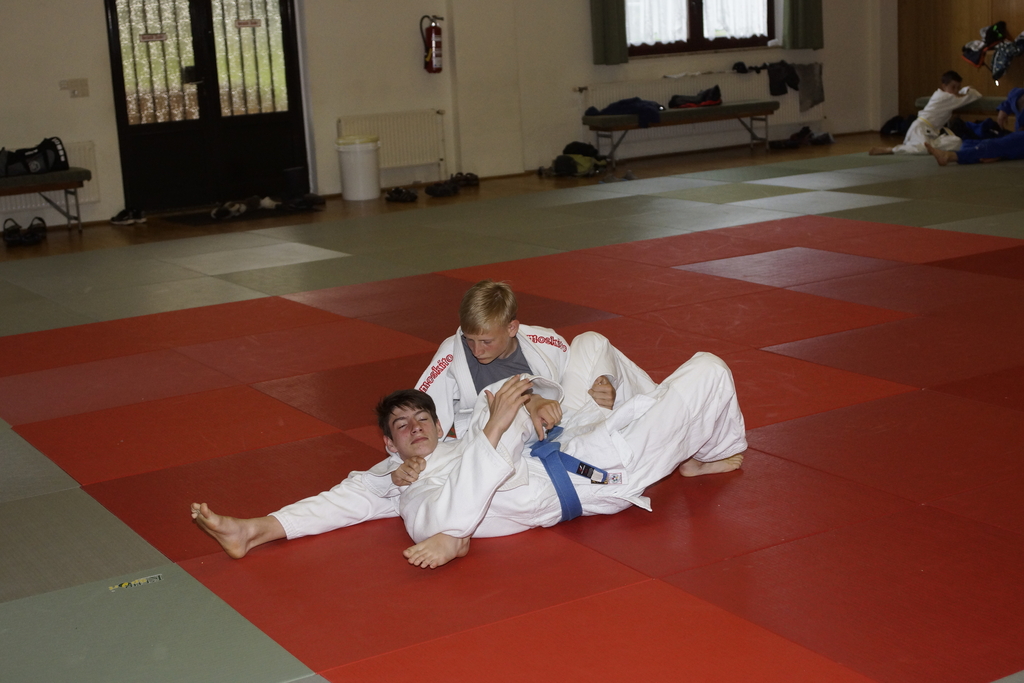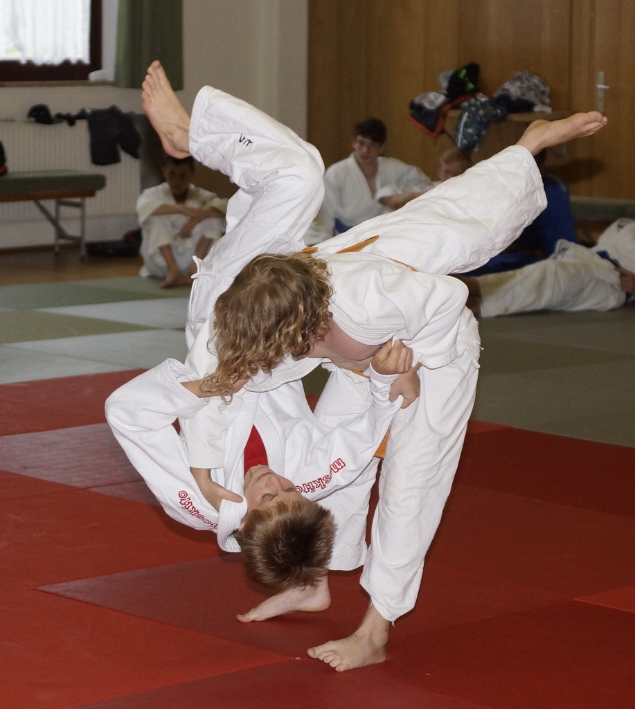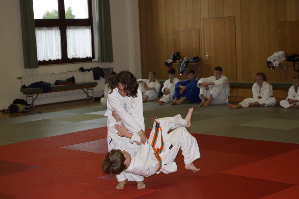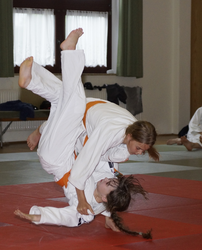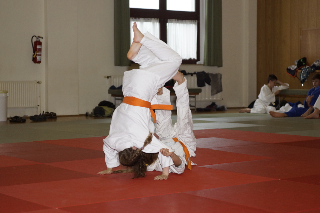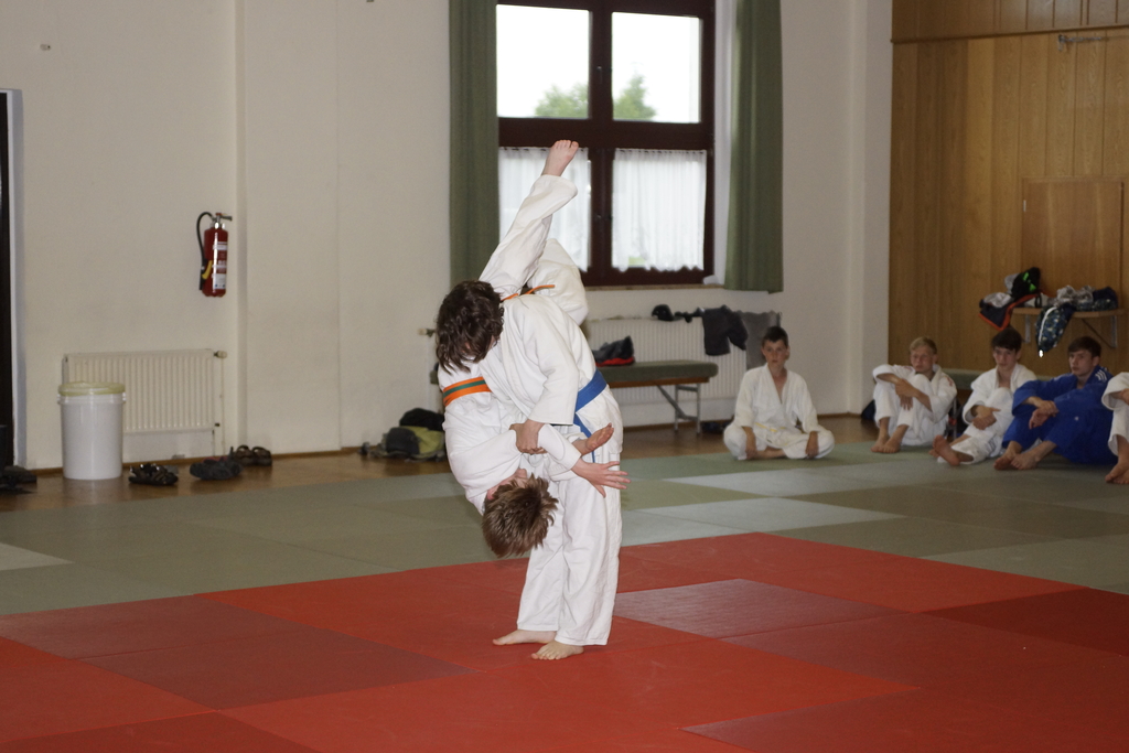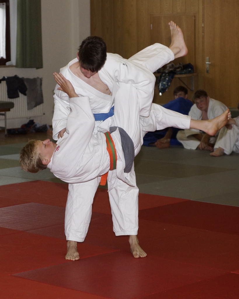 Der Montag stand dann ganz im Zeichen der „Budo-Safari“. Am Vormittag absolvierten die Judoka den leichtathletischen Teil wie Wurf/ Sprung und Lauf. Nach dem Mittagessen und dem obligatorischen „Ausruhen“ hieß es dann in der Halle „Hajime“ beim japanischen Randori der einzelnen Gruppen. Die besten Leistungen erzielten dabei Fritz Bauer, Carlotta Oertel und Justin Baumann. Nach den „heißen“ Randoris kühlte man sich im Freibad wieder ab. Zur „Budo-Safari“ gehörte auch ein kreativer Teil, welcher mit Judo bzw. dem Thema des Lager zu tun haben sollte. Hier glänzten Carlotta Oertel mit einem Gedicht und Charlize Richter mit dem Nachbau eines bunten Huhnes.