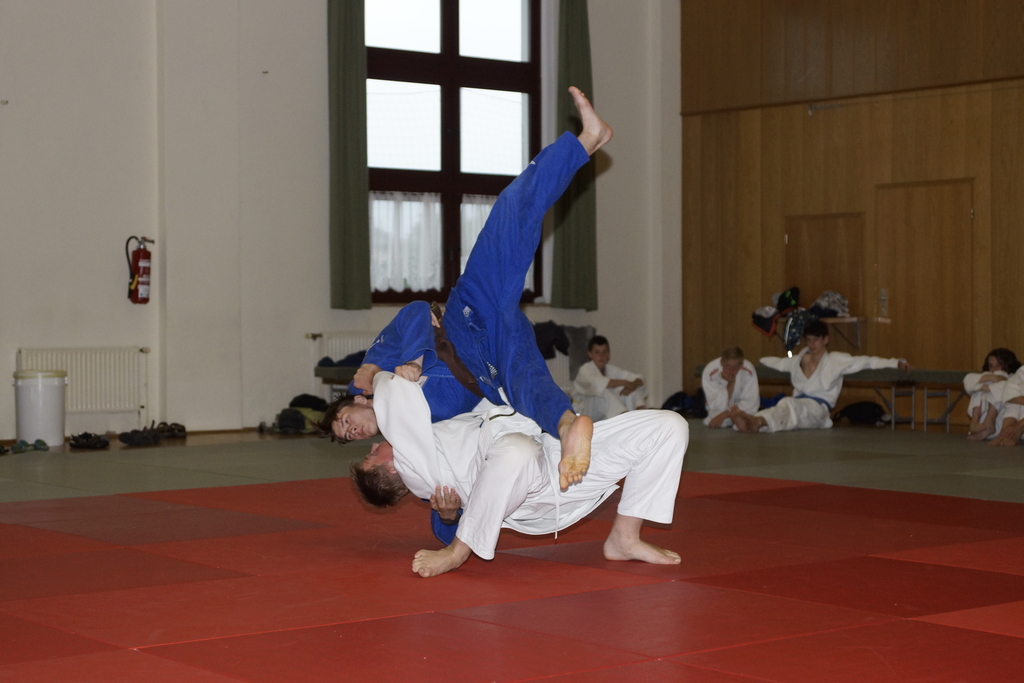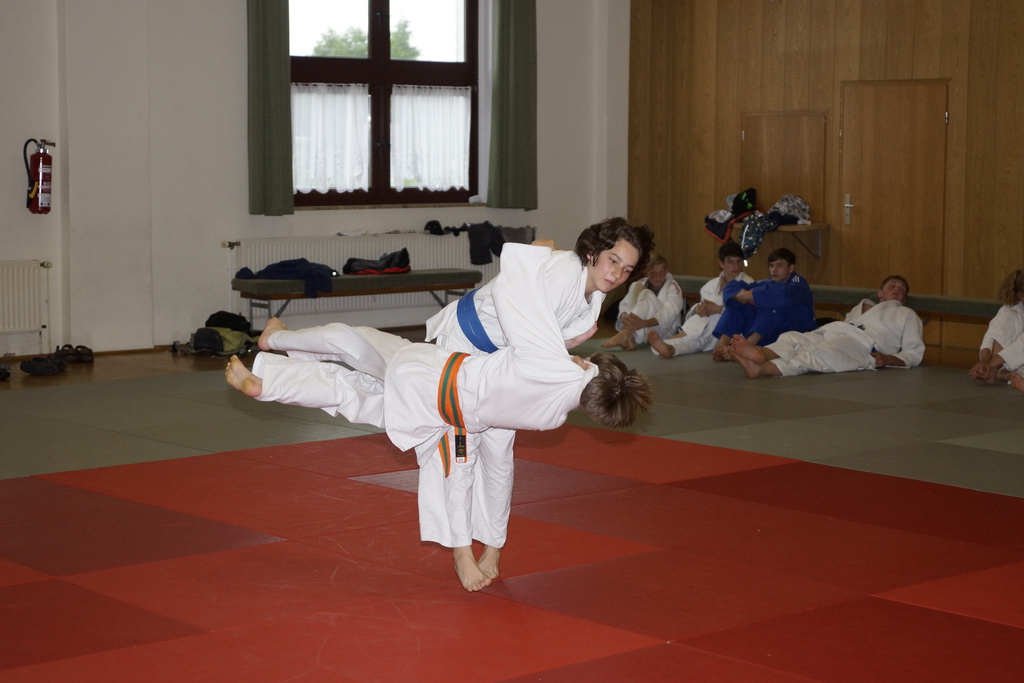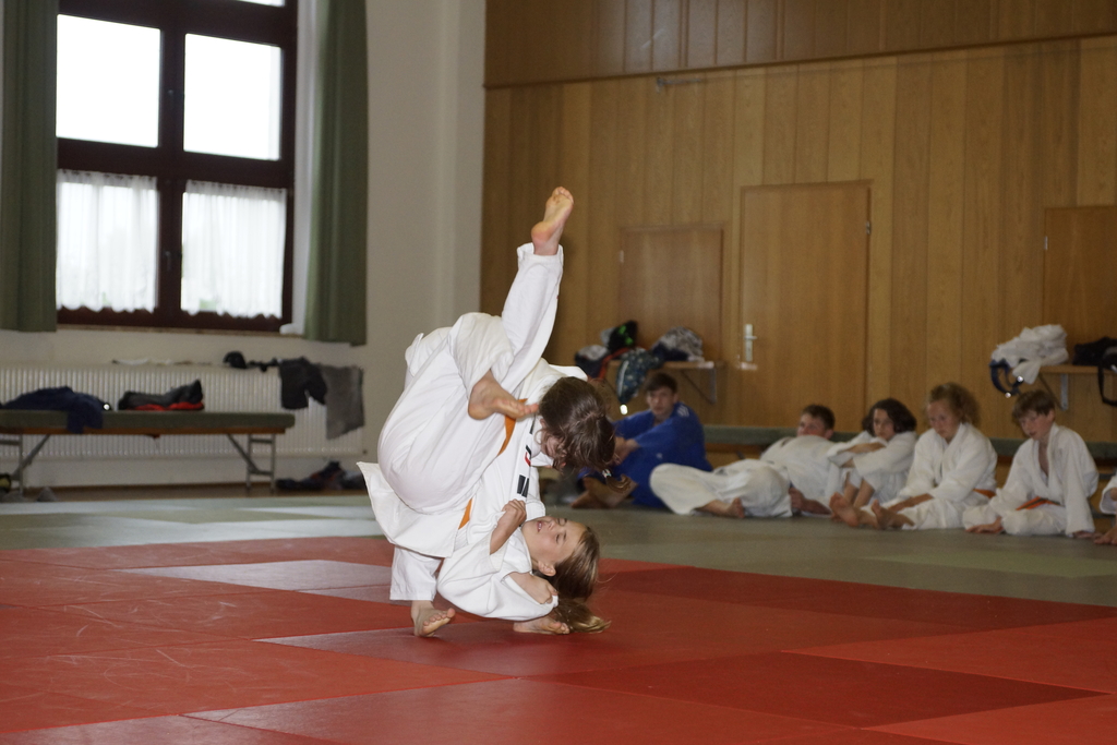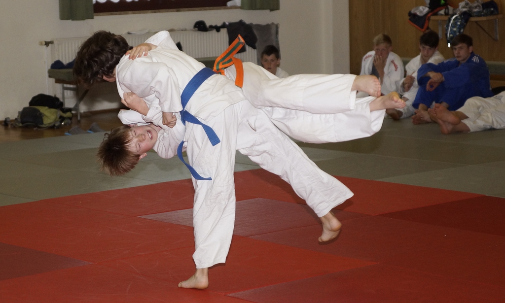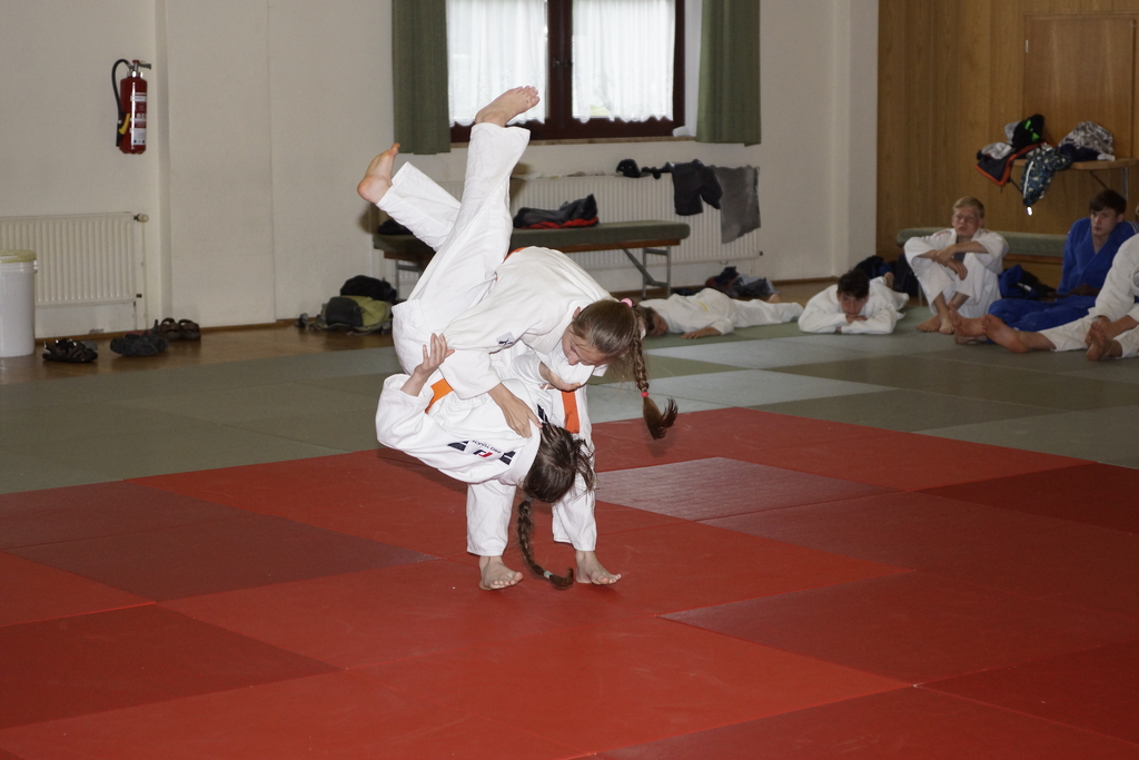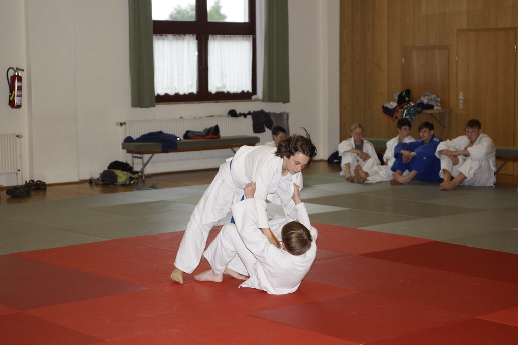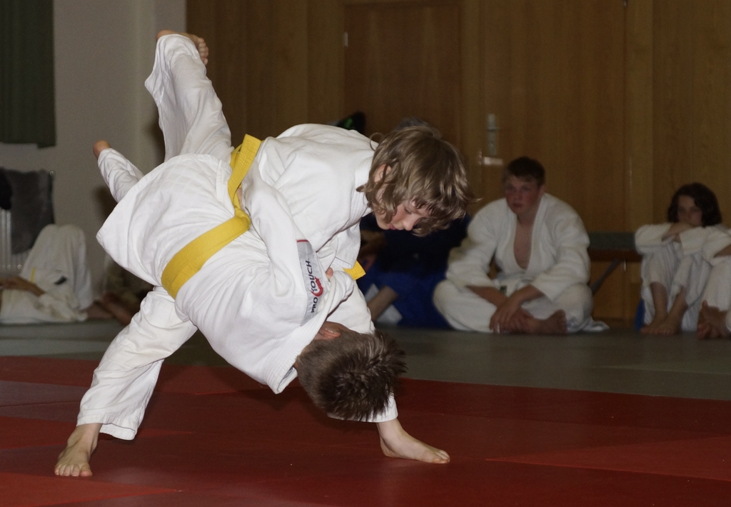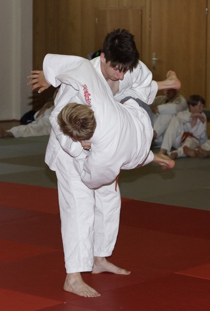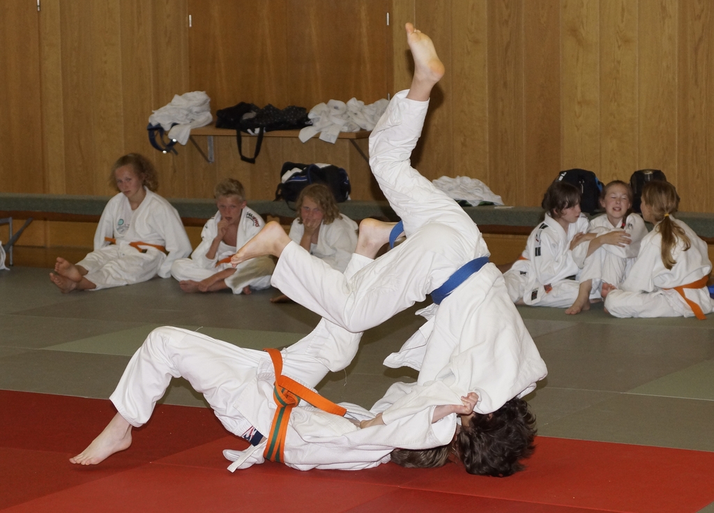 Der Montag stand dann ganz im Zeichen der „Budo-Safari“. Am Vormittag absolvierten die Judoka den leichtathletischen Teil wie Wurf/ Sprung und Lauf. Nach dem Mittagessen und dem obligatorischen „Ausruhen“ hieß es dann in der Halle „Hajime“ beim japanischen Randori der einzelnen Gruppen. Die besten Leistungen erzielten dabei Fritz Bauer, Carlotta Oertel und Justin Baumann. Nach den „heißen“ Randoris kühlte man sich im Freibad wieder ab. Zur „Budo-Safari“ gehörte auch ein kreativer Teil, welcher mit Judo bzw. dem Thema des Lager zu tun haben sollte. Hier glänzten Carlotta Oertel mit einem Gedicht und Charlize Richter mit dem Nachbau eines bunten Huhnes.