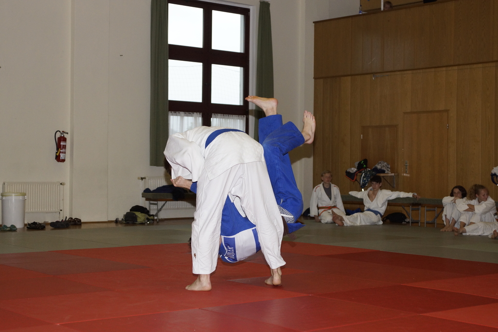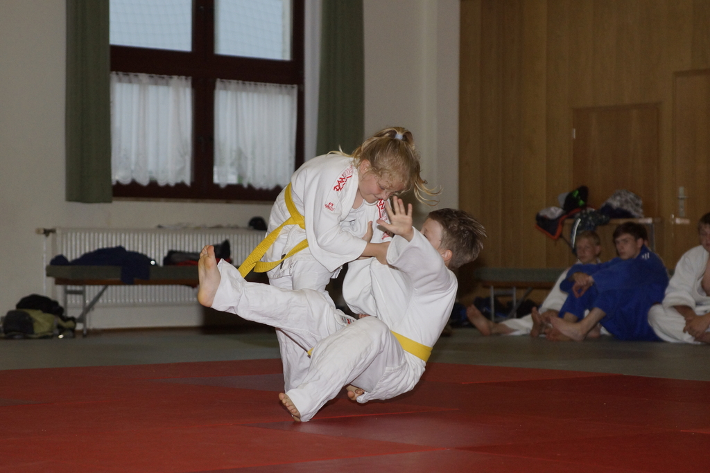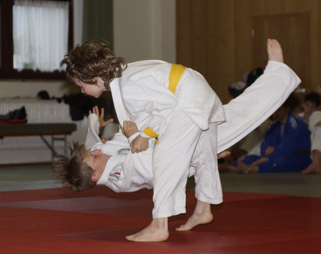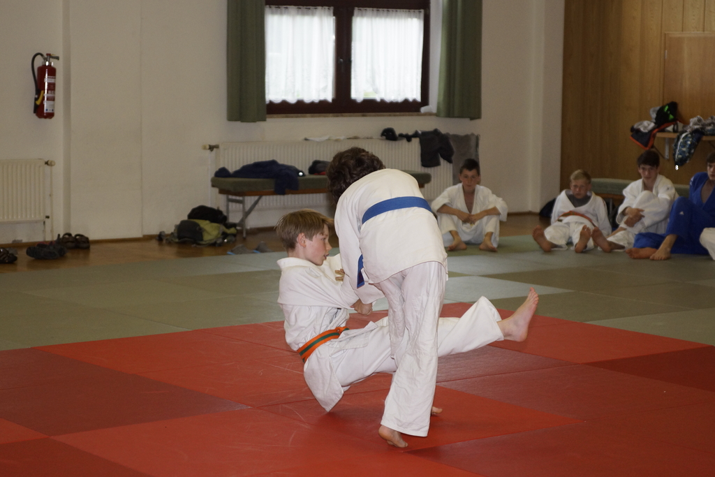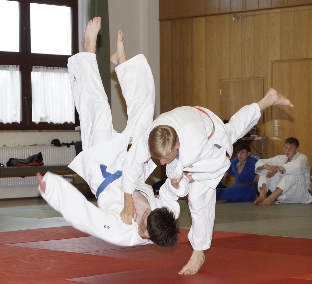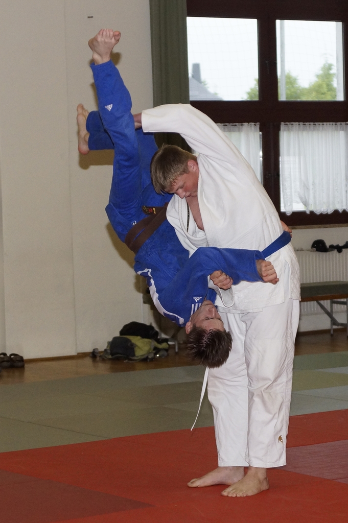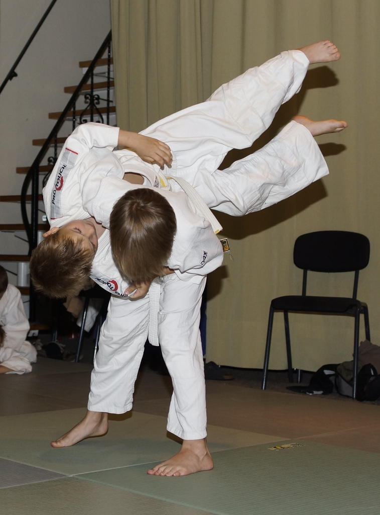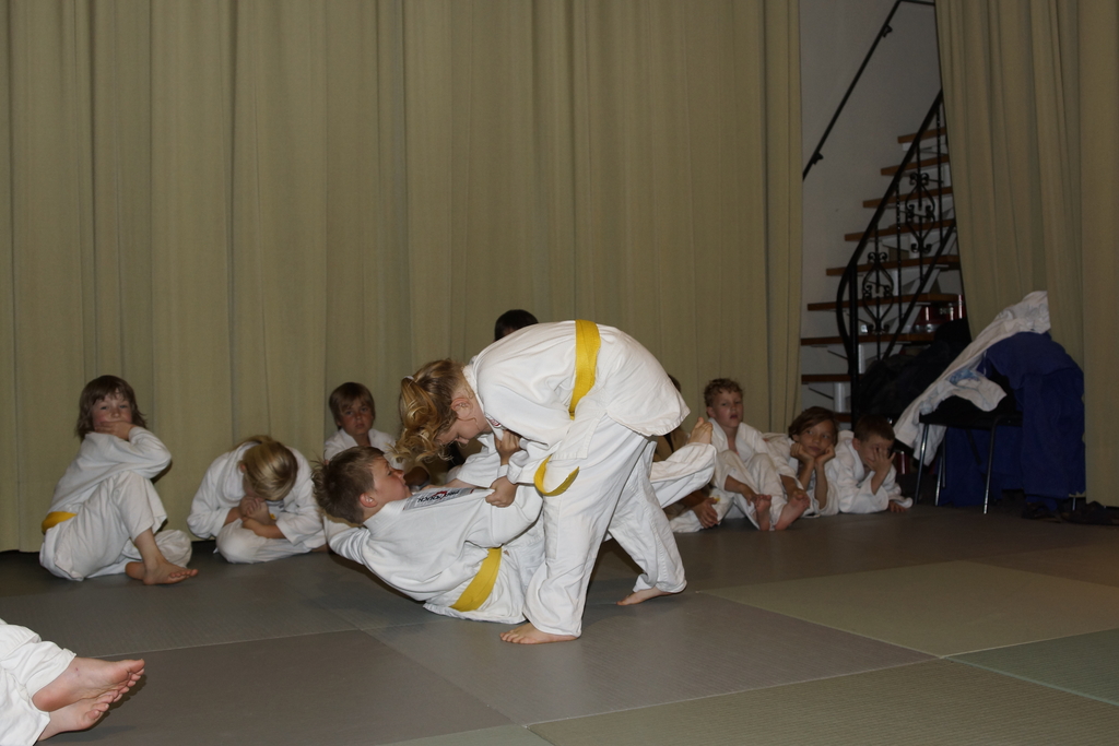 Der Montag stand dann ganz im Zeichen der „Budo-Safari“. Am Vormittag absolvierten die Judoka den leichtathletischen Teil wie Wurf/ Sprung und Lauf. Nach dem Mittagessen und dem obligatorischen „Ausruhen“ hieß es dann in der Halle „Hajime“ beim japanischen Randori der einzelnen Gruppen. Die besten Leistungen erzielten dabei Fritz Bauer, Carlotta Oertel und Justin Baumann. Nach den „heißen“ Randoris kühlte man sich im Freibad wieder ab. Zur „Budo-Safari“ gehörte auch ein kreativer Teil, welcher mit Judo bzw. dem Thema des Lager zu tun haben sollte. Hier glänzten Carlotta Oertel mit einem Gedicht und Charlize Richter mit dem Nachbau eines bunten Huhnes.