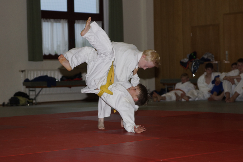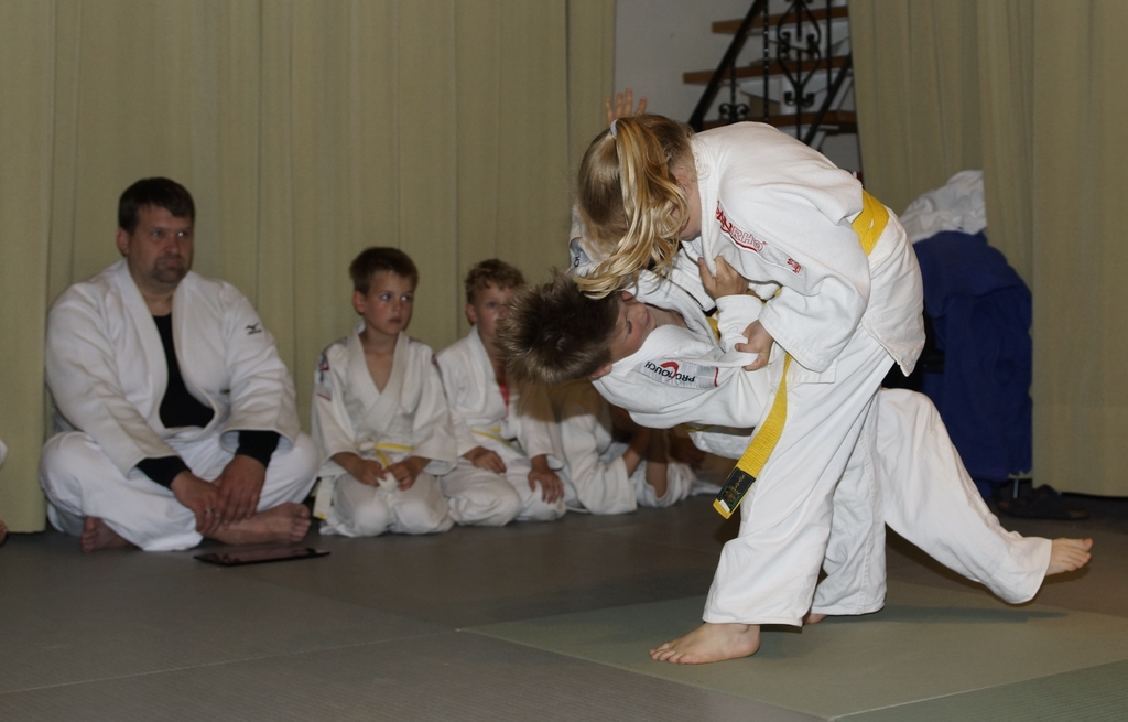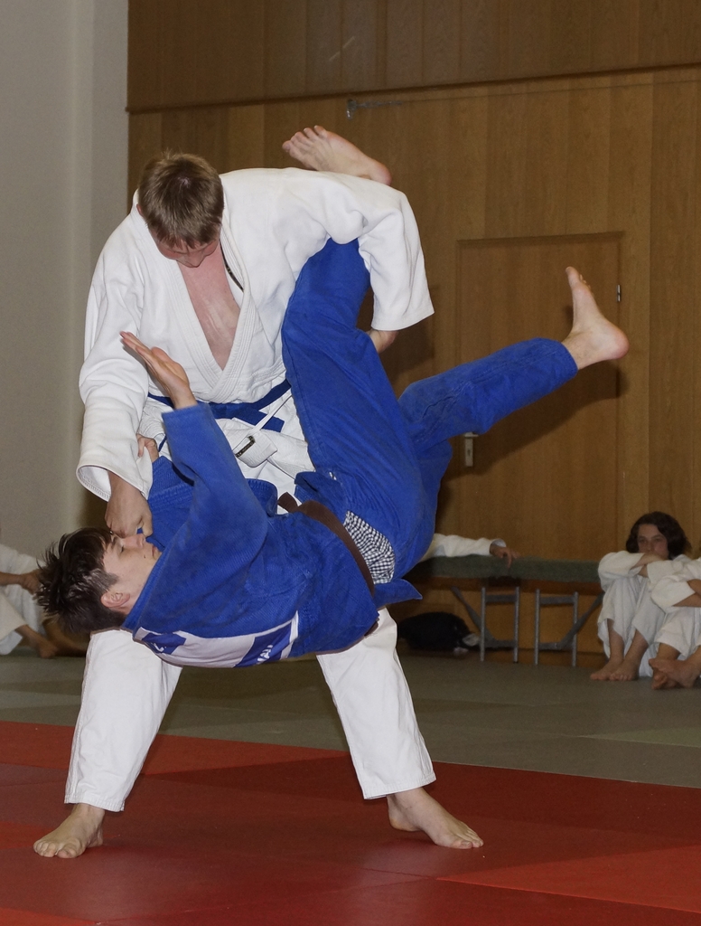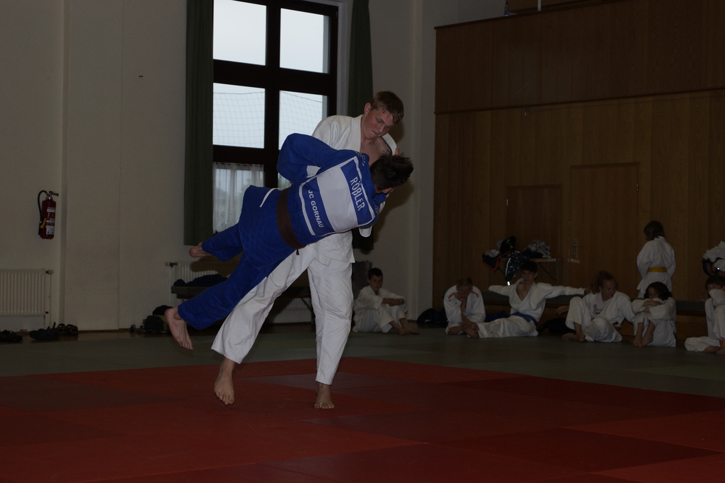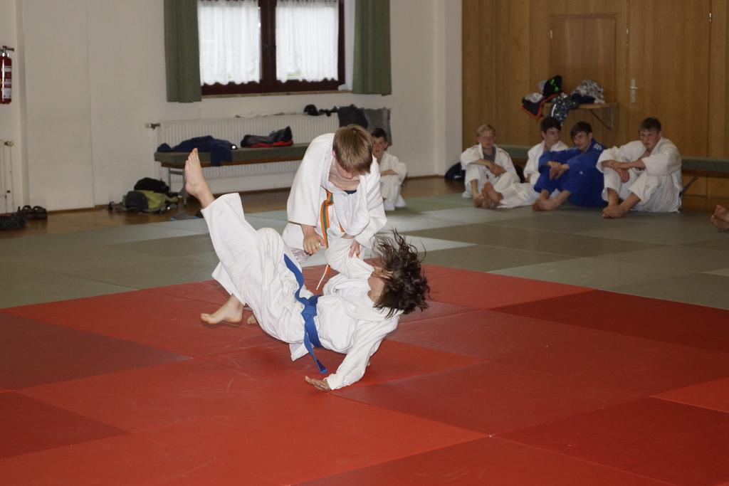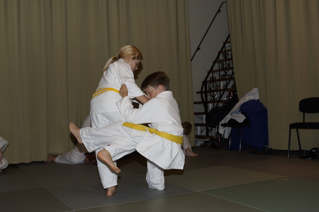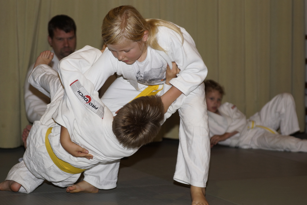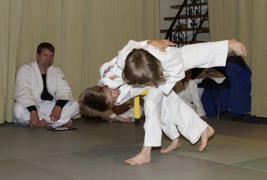 Der Montag stand dann ganz im Zeichen der „Budo-Safari“. Am Vormittag absolvierten die Judoka den leichtathletischen Teil wie Wurf/ Sprung und Lauf. Nach dem Mittagessen und dem obligatorischen „Ausruhen“ hieß es dann in der Halle „Hajime“ beim japanischen Randori der einzelnen Gruppen. Die besten Leistungen erzielten dabei Fritz Bauer, Carlotta Oertel und Justin Baumann. Nach den „heißen“ Randoris kühlte man sich im Freibad wieder ab. Zur „Budo-Safari“ gehörte auch ein kreativer Teil, welcher mit Judo bzw. dem Thema des Lager zu tun haben sollte. Hier glänzten Carlotta Oertel mit einem Gedicht und Charlize Richter mit dem Nachbau eines bunten Huhnes.