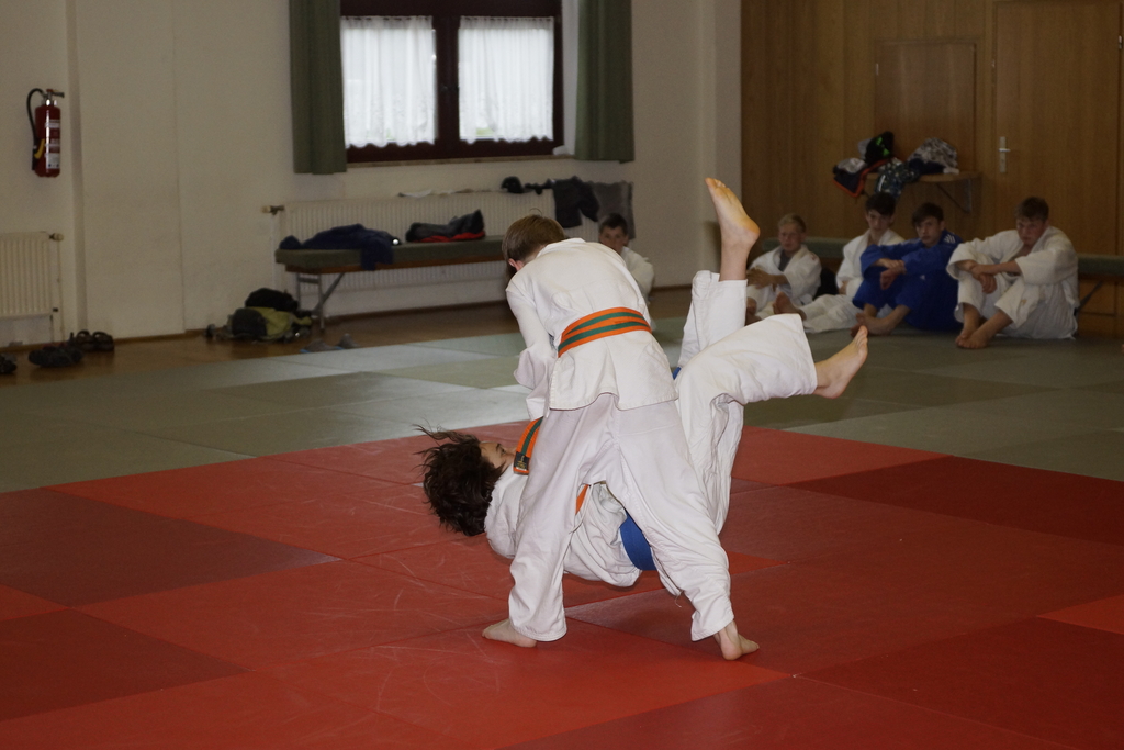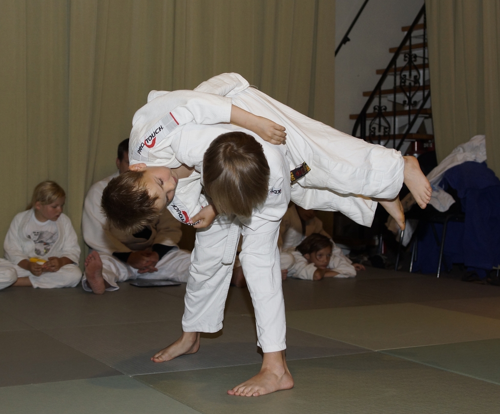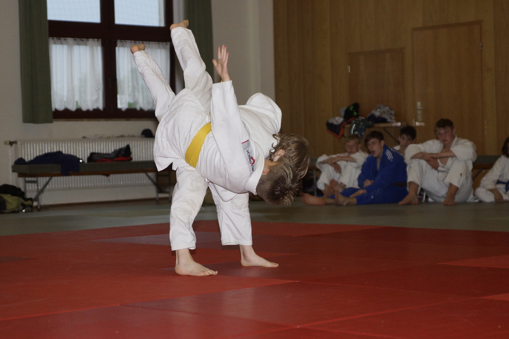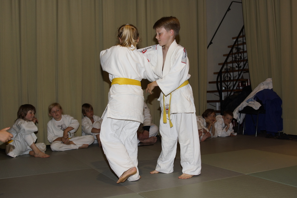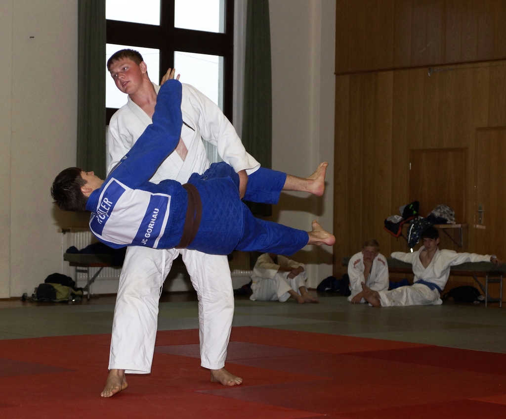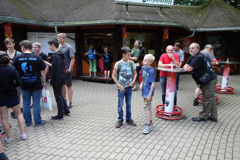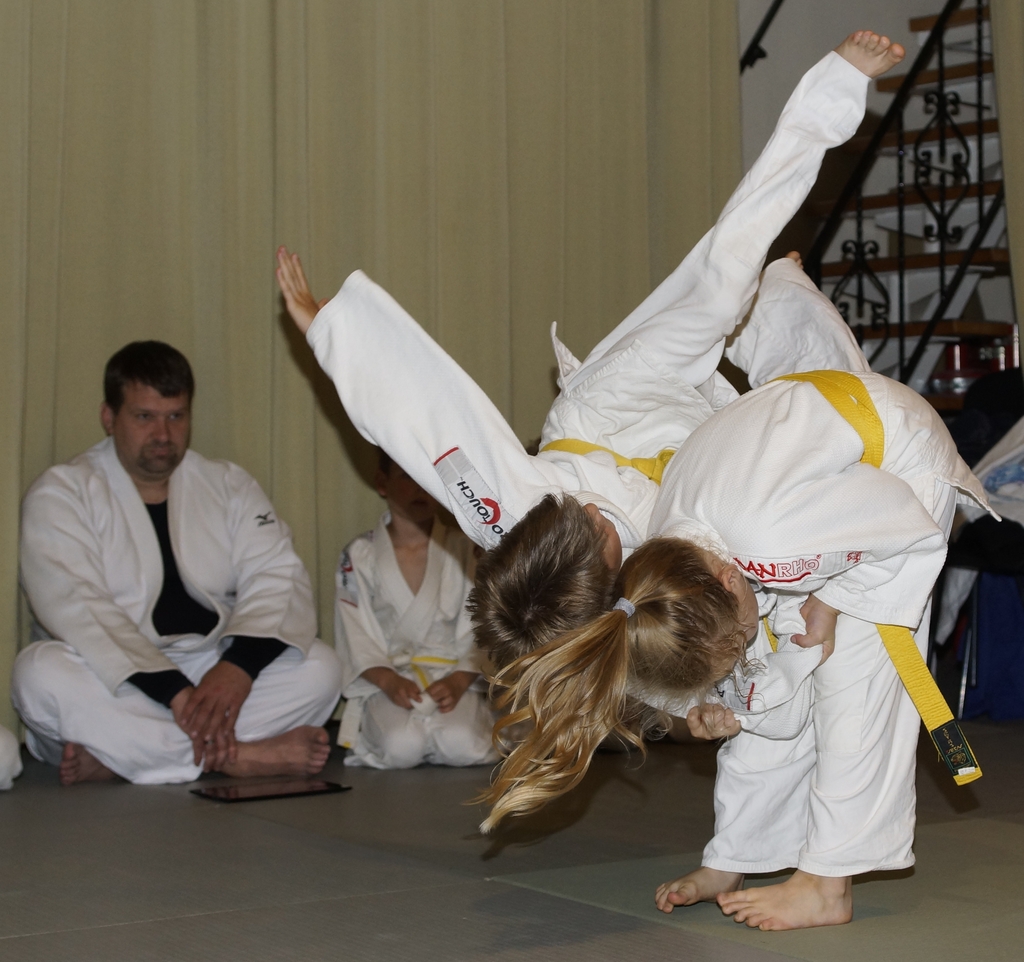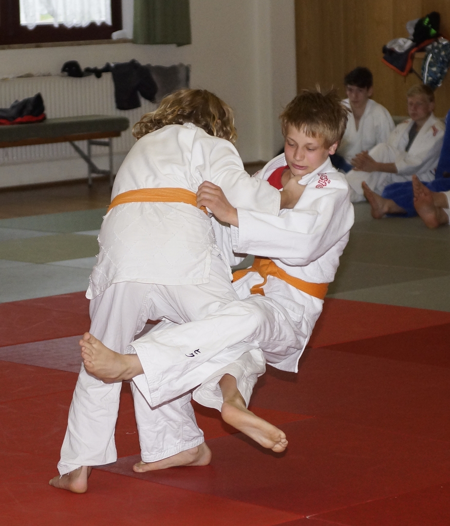 Der Montag stand dann ganz im Zeichen der „Budo-Safari“. Am Vormittag absolvierten die Judoka den leichtathletischen Teil wie Wurf/ Sprung und Lauf. Nach dem Mittagessen und dem obligatorischen „Ausruhen“ hieß es dann in der Halle „Hajime“ beim japanischen Randori der einzelnen Gruppen. Die besten Leistungen erzielten dabei Fritz Bauer, Carlotta Oertel und Justin Baumann. Nach den „heißen“ Randoris kühlte man sich im Freibad wieder ab. Zur „Budo-Safari“ gehörte auch ein kreativer Teil, welcher mit Judo bzw. dem Thema des Lager zu tun haben sollte. Hier glänzten Carlotta Oertel mit einem Gedicht und Charlize Richter mit dem Nachbau eines bunten Huhnes.