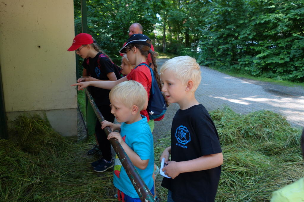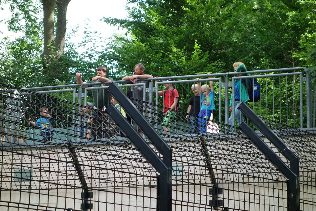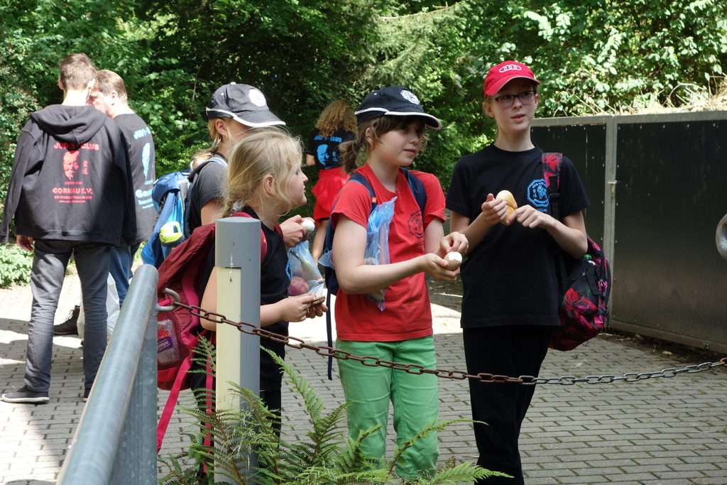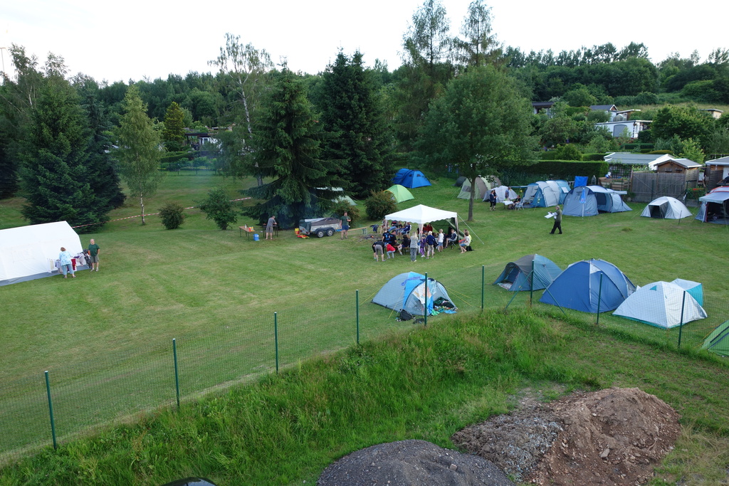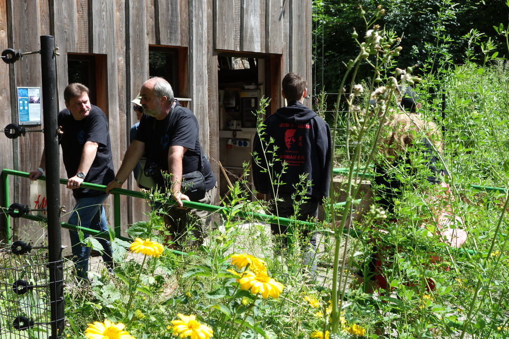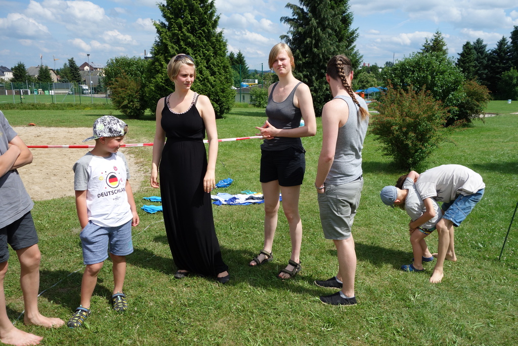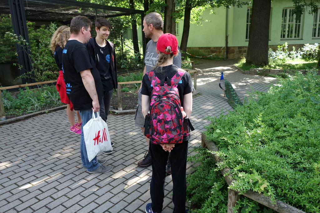 Nach dem Frühstück fuhr am Sonntag das gesamte Lager, außer unseren Küchenfeen, nach Chemnitz und besuchte in Rabenstein den dortigen Zoo. Für viele war es der erste Besuch dort überhaupt und von den Erwachsenen waren auch viele sehr lange nicht dort und so gab es viel Neues zu bestaunen. Als man am Nachmittag im Camp eintraf badete man ausgiebig und dann wurden die Eltern begrüßt, welche zum Familientag eingetroffen waren. Highlight war natürlich die Fahrt mit einer Hebebühne der Fa. Richter-Baumpflege aus Neukirchen. In einer Kabine ging es, gut angeschnallt und gesichert, bis zu 27 Meter in die Höhe und da kamen selbst die Erwachsenen aus dem Staunen nicht heraus. Der Ausblick war überwältigend. Später ging es, nach einem ausgiebigen Grillabend, mit der Aufnahmeprüfung der „Wilden Hühner“ weiter, was eine ziemlich feuchte Angelegenheit war.