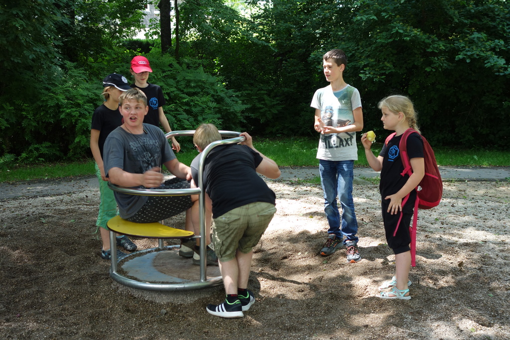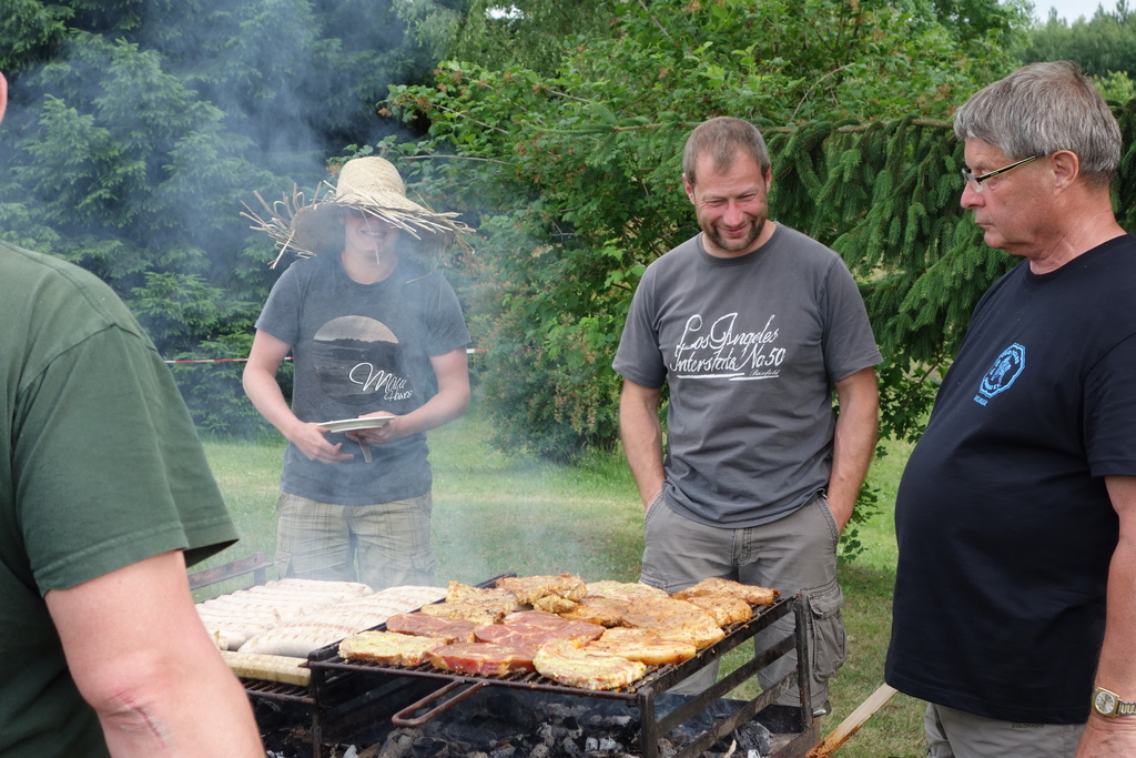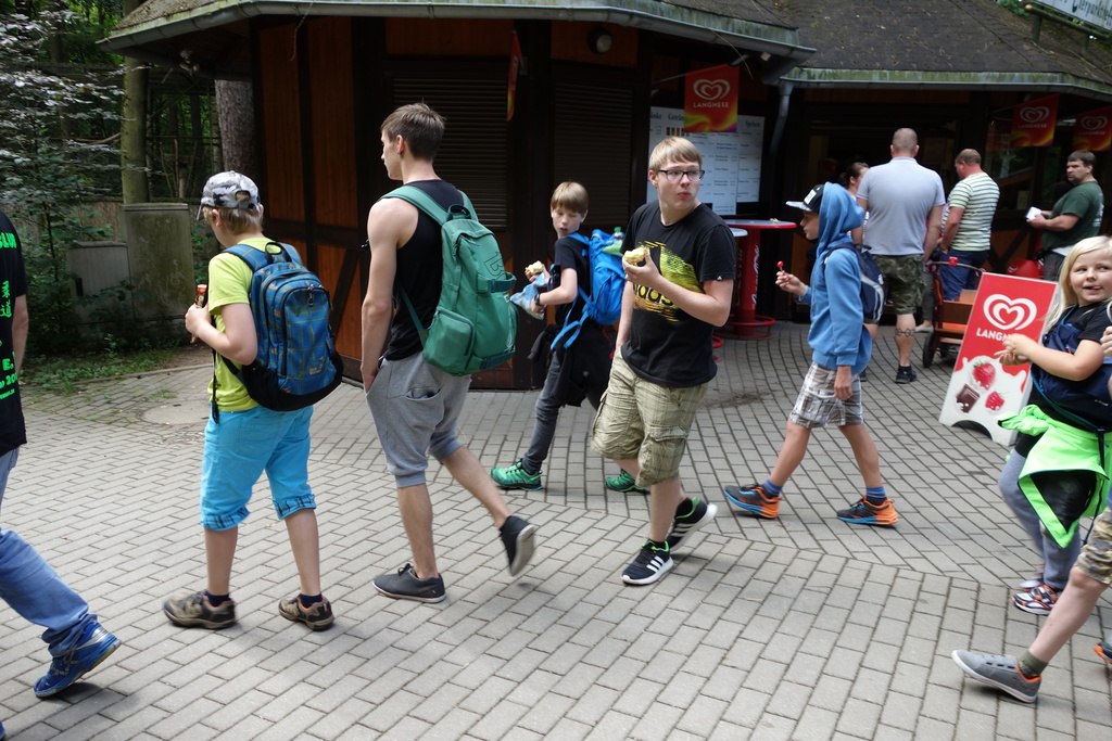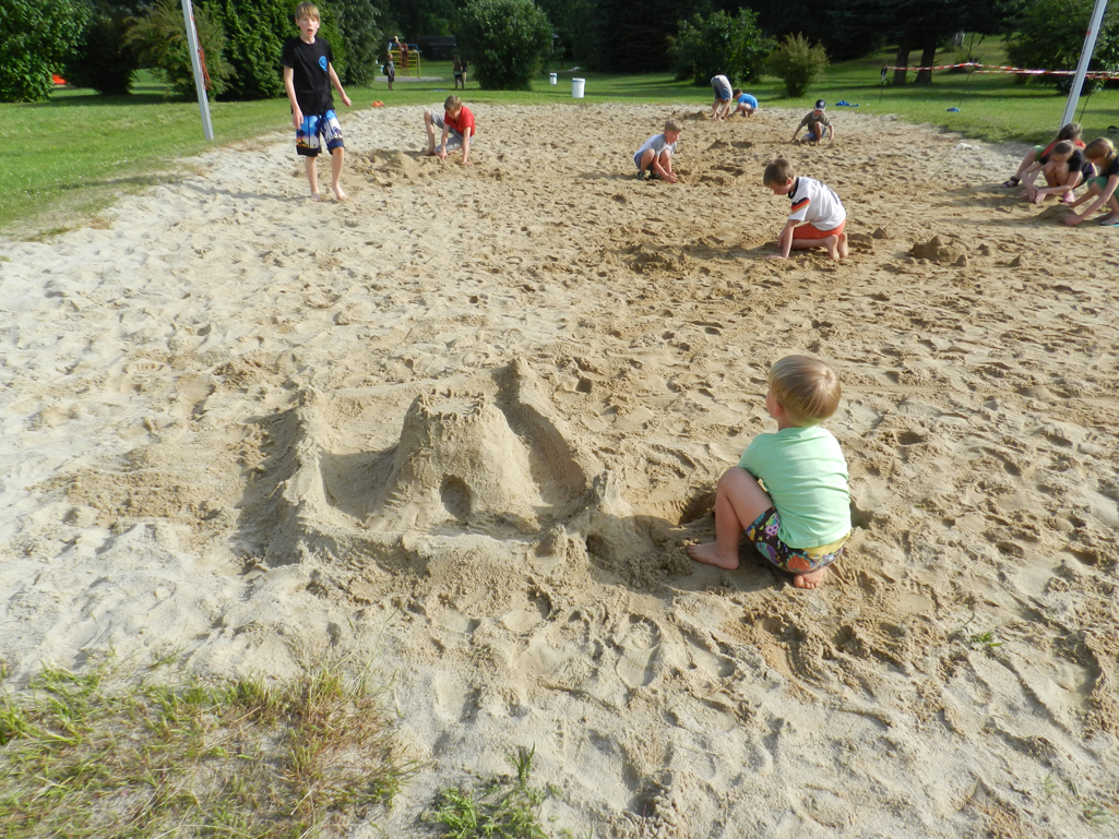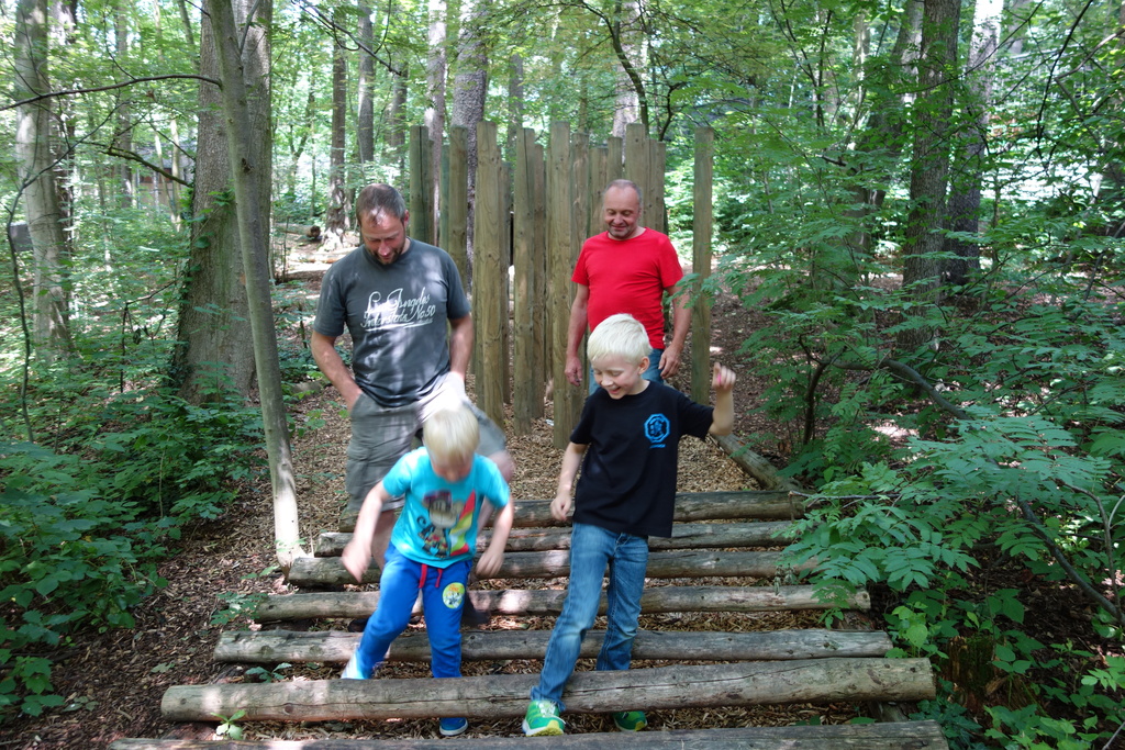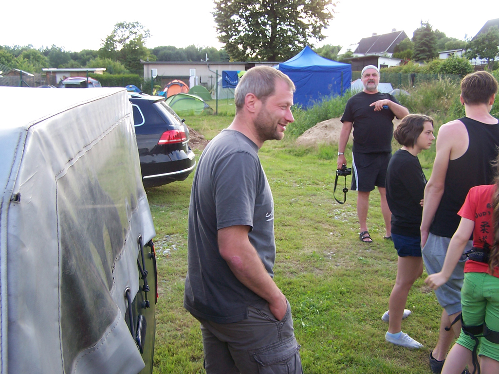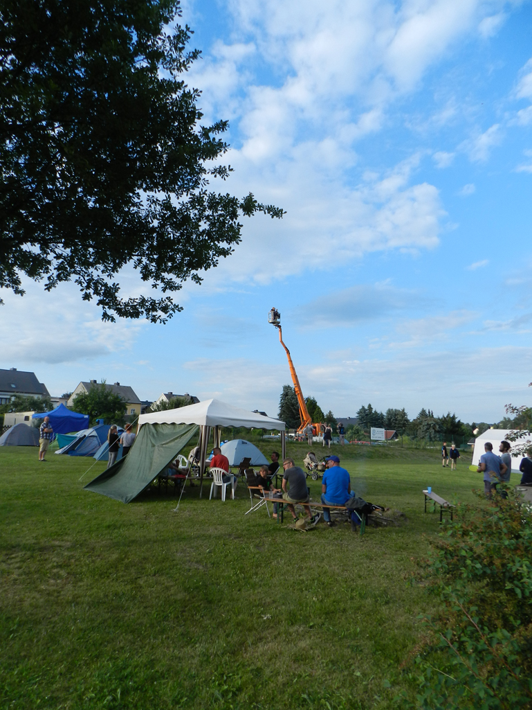 Nach dem Frühstück fuhr am Sonntag das gesamte Lager, außer unseren Küchenfeen, nach Chemnitz und besuchte in Rabenstein den dortigen Zoo. Für viele war es der erste Besuch dort überhaupt und von den Erwachsenen waren auch viele sehr lange nicht dort und so gab es viel Neues zu bestaunen. Als man am Nachmittag im Camp eintraf badete man ausgiebig und dann wurden die Eltern begrüßt, welche zum Familientag eingetroffen waren. Highlight war natürlich die Fahrt mit einer Hebebühne der Fa. Richter-Baumpflege aus Neukirchen. In einer Kabine ging es, gut angeschnallt und gesichert, bis zu 27 Meter in die Höhe und da kamen selbst die Erwachsenen aus dem Staunen nicht heraus. Der Ausblick war überwältigend. Später ging es, nach einem ausgiebigen Grillabend, mit der Aufnahmeprüfung der „Wilden Hühner“ weiter, was eine ziemlich feuchte Angelegenheit war.