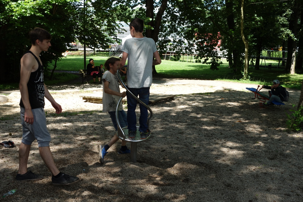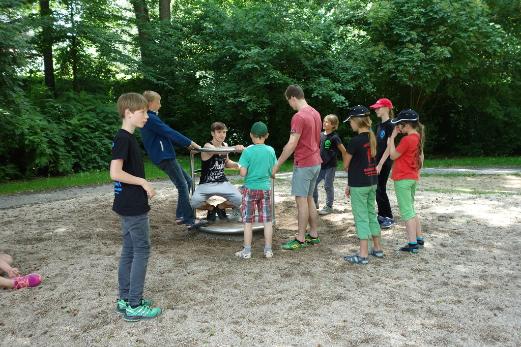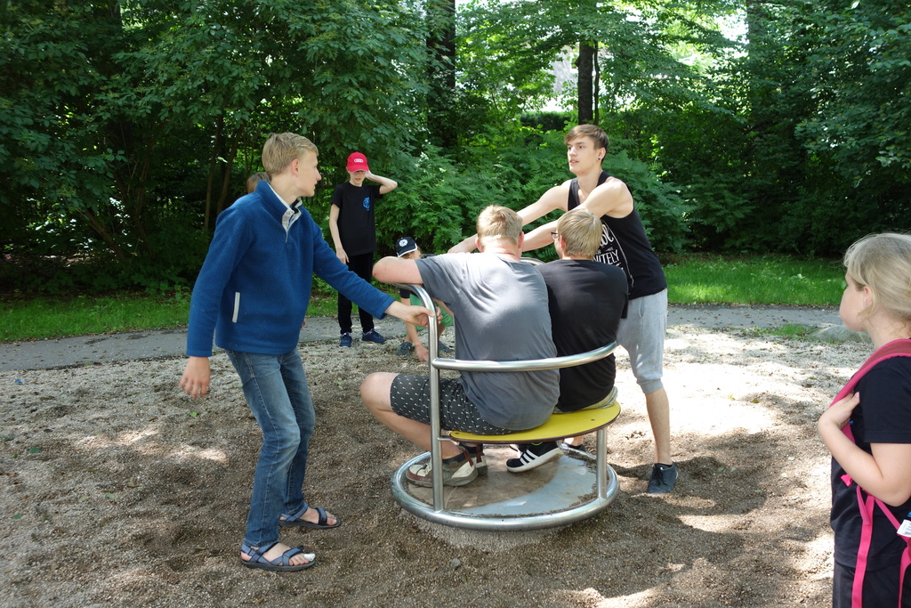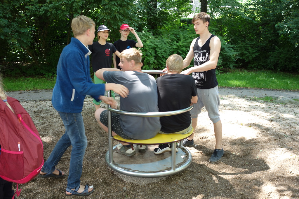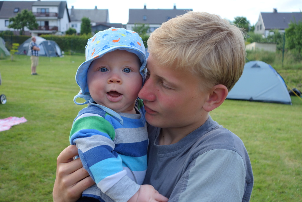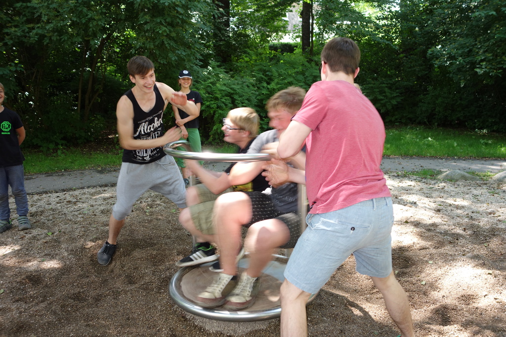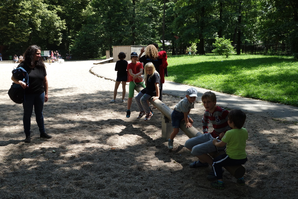 Nach dem Frühstück fuhr am Sonntag das gesamte Lager, außer unseren Küchenfeen, nach Chemnitz und besuchte in Rabenstein den dortigen Zoo. Für viele war es der erste Besuch dort überhaupt und von den Erwachsenen waren auch viele sehr lange nicht dort und so gab es viel Neues zu bestaunen. Als man am Nachmittag im Camp eintraf badete man ausgiebig und dann wurden die Eltern begrüßt, welche zum Familientag eingetroffen waren. Highlight war natürlich die Fahrt mit einer Hebebühne der Fa. Richter-Baumpflege aus Neukirchen. In einer Kabine ging es, gut angeschnallt und gesichert, bis zu 27 Meter in die Höhe und da kamen selbst die Erwachsenen aus dem Staunen nicht heraus. Der Ausblick war überwältigend. Später ging es, nach einem ausgiebigen Grillabend, mit der Aufnahmeprüfung der „Wilden Hühner“ weiter, was eine ziemlich feuchte Angelegenheit war.