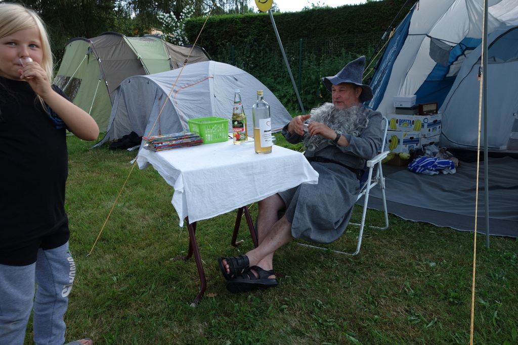 Der Dienstag begann mit der Vorbereitung der Schauvorführung zum diesjährigen Schul-u. Heimatfest im August. Es wurden diverse Techniken trainiert, Showeinlagen geprobt und weiteres mehr und das ging am Nachmittag damit weiter. Einige der „Großen“ hatten am Nachmittag noch alle Hände voll zu tun, um die obligatorische Nachtwanderung wieder zu einem unvergesslichen Erlebnis werden zu lassen. Es mussten Kostüme vorbereitet werden, die einzelten Treffpunkte im Wald präpariert und so weiter und so fort. Gegen 22.00 Uhr ging es dann mit der Wanderung los. Einige, hauptsächlich „heranwachsende Nachtwanderer“ bis 12/13 Jahre waren zu Beginn noch recht lautstark aber das änderte sich im Laufe der Wanderung. Auf ihrer „Schatzsuche“ mussten sie diverse Punkte im Wald ansteuern und die dort wartenden Geister und Feen waren nicht alle wohlwollend eingestellt. Am schlimmsten hatte es jedoch ein „Ninja“. Vor ihm hatten die Wenigsten Respekt. Frei nach dem Motto „Auf ihn mit Gebrüll!“ ging es ganz schön zur Sache. Natürlich haben alle 2 Gruppen ihr Ziel erreicht und erhielten von einem „guten Geist“ ihren Schatz in Form von Naschereien ausgehändigt. Völlig kaputt fielen die Kinder nach der Wanderung in ihre Zelte und auch die Erwachsenen und ihre Helfer waren ziemlich fertig.
