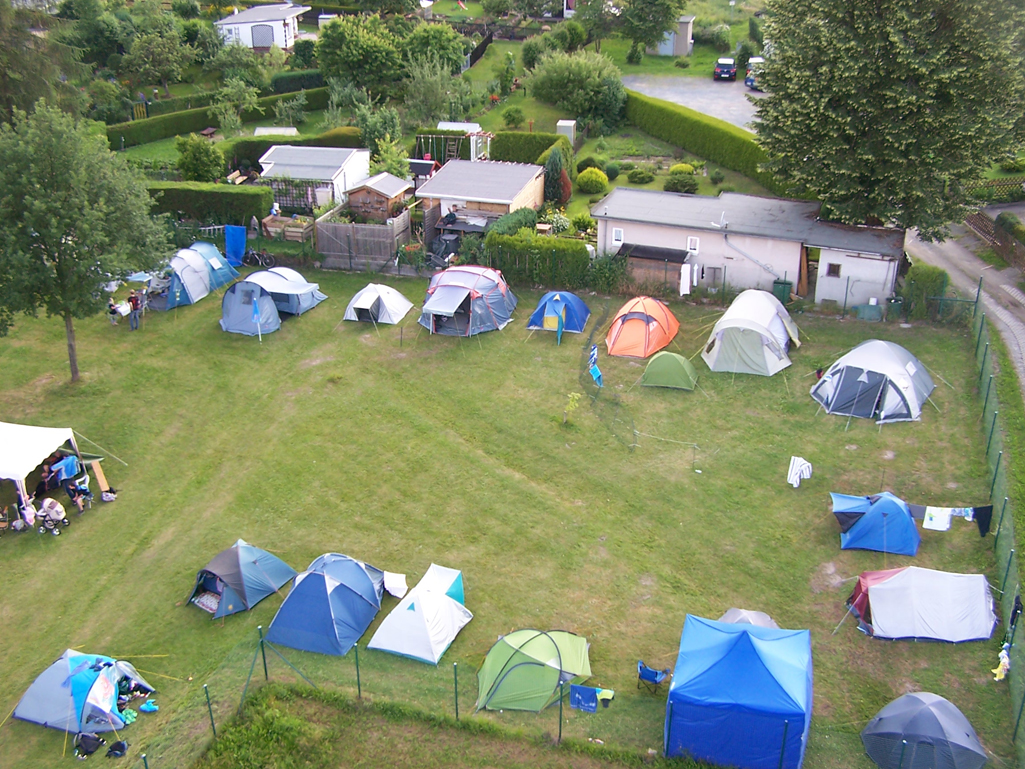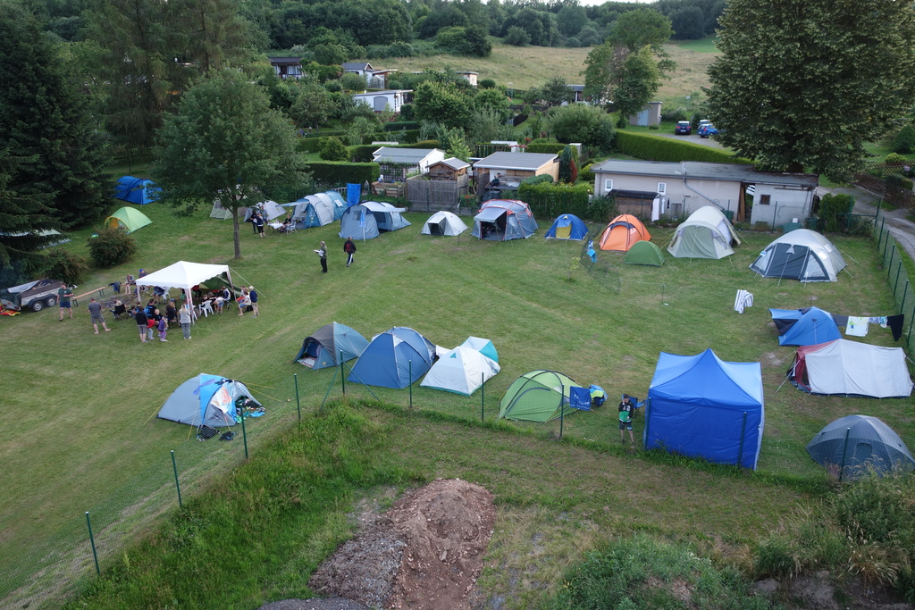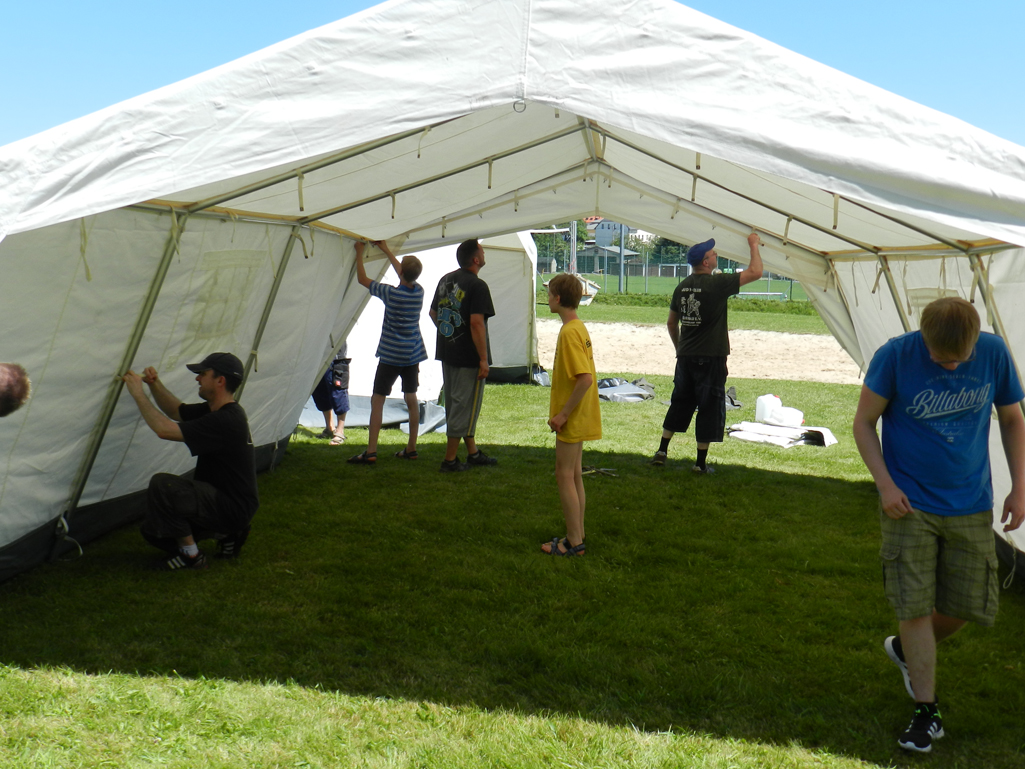Am Freitag begann man beizeiten mit den ersten Aufbauarbeiten des Lagers. So wurden mehrere große Zelte für die Verpflegung und als Essenszelte aufgebaut und eingerichtet. Diese Zelte wurden uns freundlicherweise von der Jugendfeuerwehr zur Verfügung gestellt. Dann kamen die persönlichen Zelte an die Reihe. Am Abend erfolgte noch einmal eine Einweisung der einzelnen Gruppenleiter, ehe es zur ersten Nachtruhe ging.