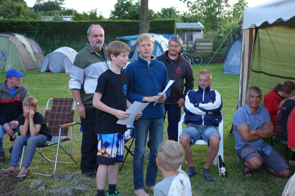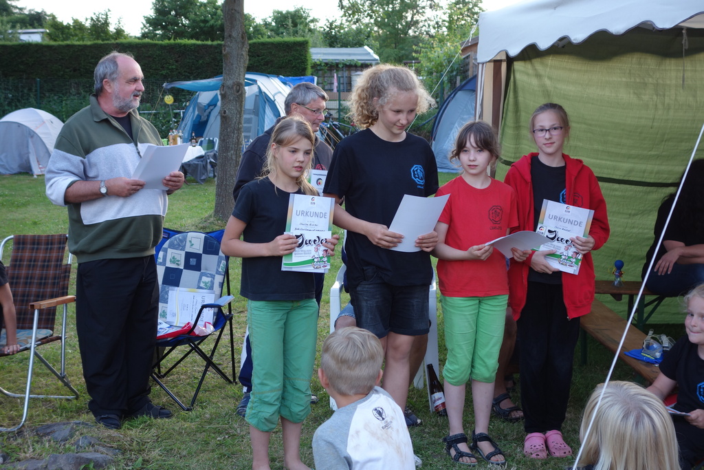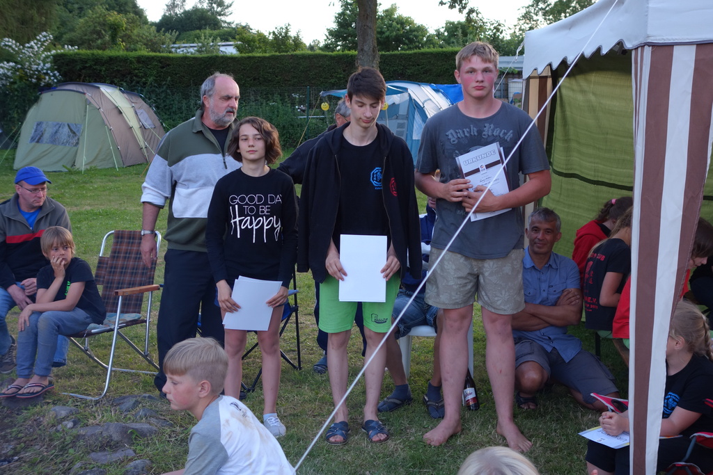 Am Mittwochmorgen überreichte Stephan Henz im Namen aller Teilnehmern der Lagers an Fatima Tändler, Anja Thriemer und Uta Müller eine kleine Aufmerksamkeit und bedankte sich bei Ihnen dafür, dass sie dafür gesorgt hatten, dass das leibliche Wohl aller Campteilnehmer nicht zu kurz kam. Nach dem Frühstück begannen alle damit, das Camp wieder abzubauen. Dank der Hilfe von Vielen konnte man gegen Mittag sagen „Geschafft“.