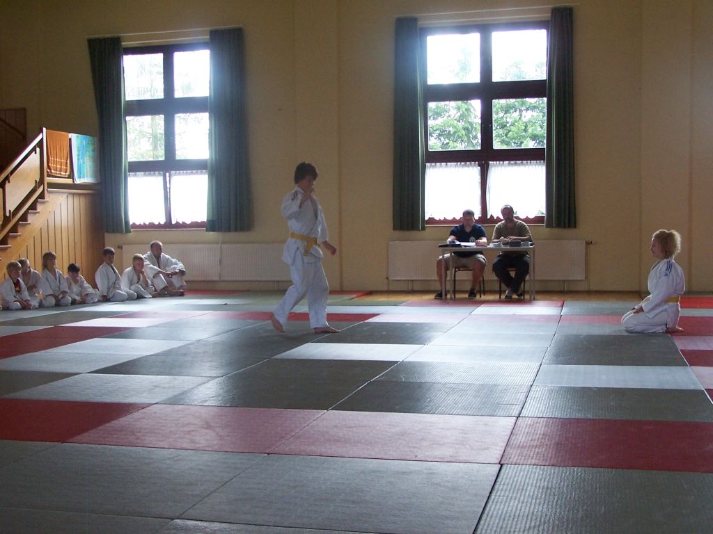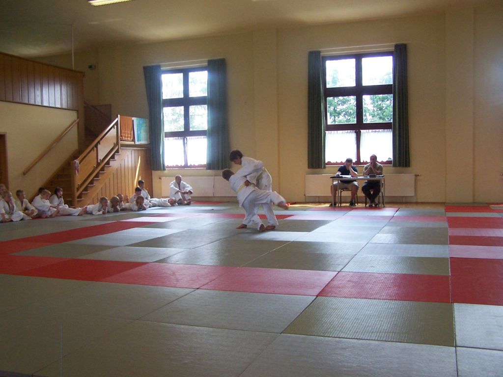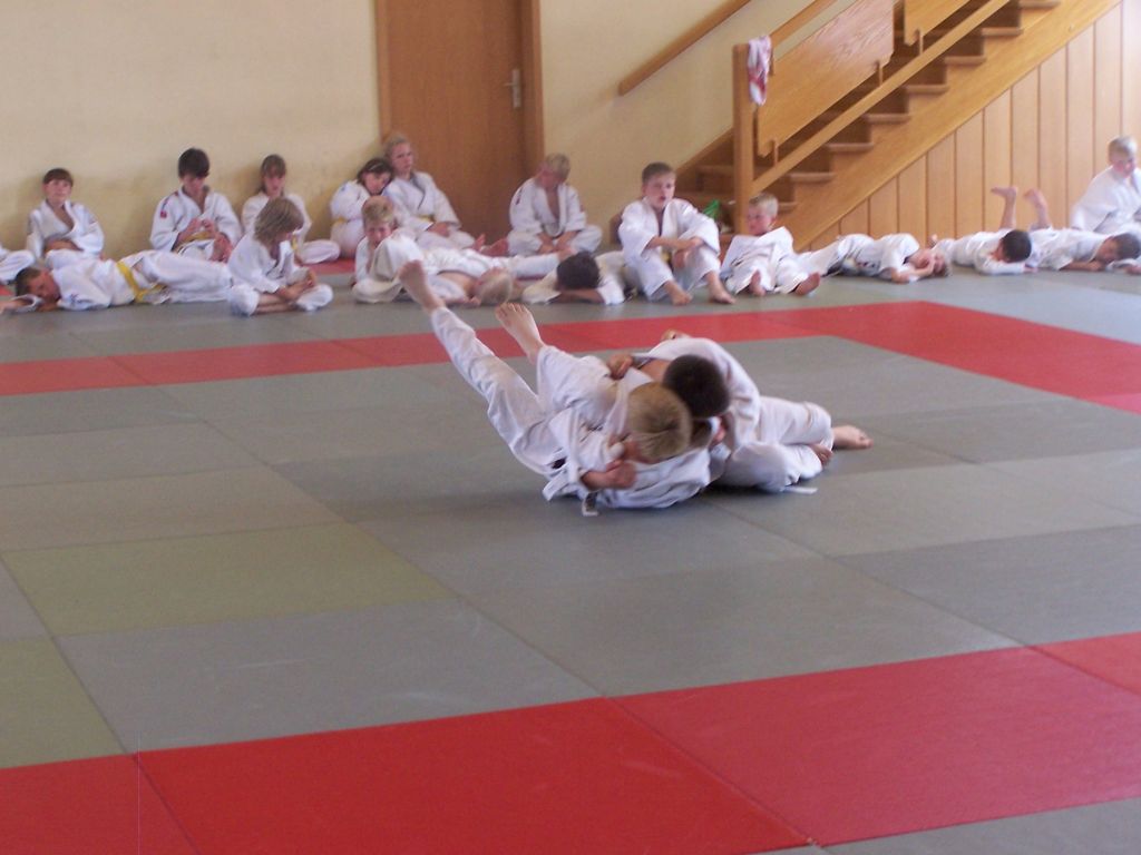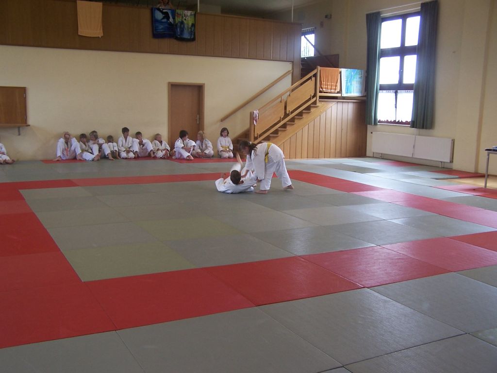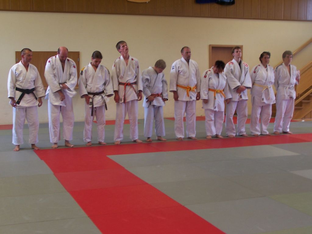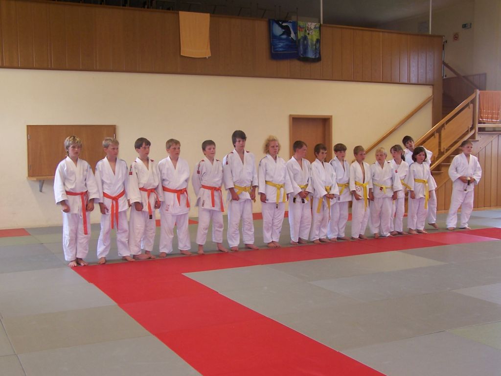 Am 30.06.2009 fand während unseres 13.Trainingslagers die 2. Gürtelprüfung in diesem Jahr statt. Angetreten waren insgesamt 31 Kinder, Jugendliche und Erwachsene Judoka um ihren Leistungsstand zur Erlangung des nächst höheren Kyu-Grades zu demonstrieren. Bei den 11 Prüflingen für den weiß-gelben Gürtel (8.Kyu) und den 4 Prüflingen für den gelben Gürtel (7.Kyu) lief alles gut und die Probanten gingen mit guten Kritiken vom Prüfer Uwe Drechsel (II.DAN) von der Matte. Auch die 8 Teilnehmer der Prüfung zum gelb-orangen Gürtel gaben ihr Bestes. Herausragend war nach Ansicht des Prüfers die Leistung von Theresa Wirbs, welche nicht nur bei den Wurftechniken sondern auch bei der Demonstration der Boden-u. Wettkampftechniken glänzte. Leider lief es in der selben Kategorie für 2 Mädchen und einen Jungen nicht so gut. Sie konnten mit ihrer Leistung den Prüfer nicht überzeugen und dürfen die Prüfung im Oktober noch einmal wiederholen. Die anderen Kyu-Grade wurden ebenfalls mit sehr guten Leistungen abgelegt. Hervorzuheben sind dabei die Darbietungen von Kevin Wächtler (4.Kyu) und Philipp Auerswald (3.Kyu).