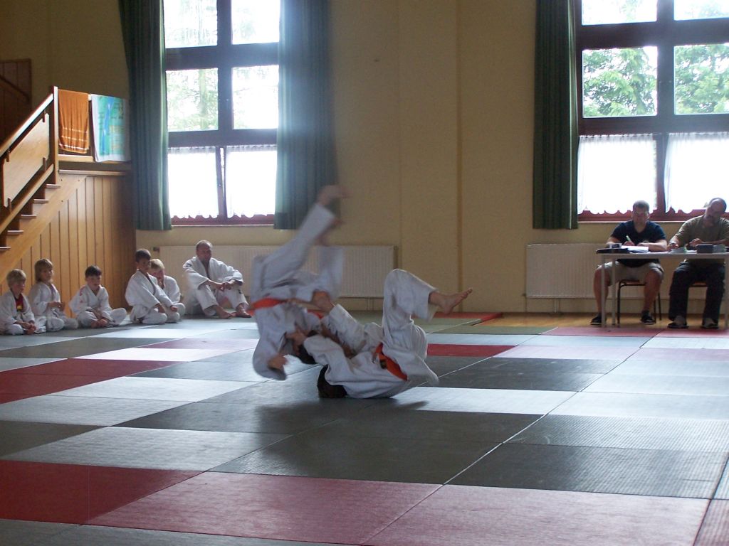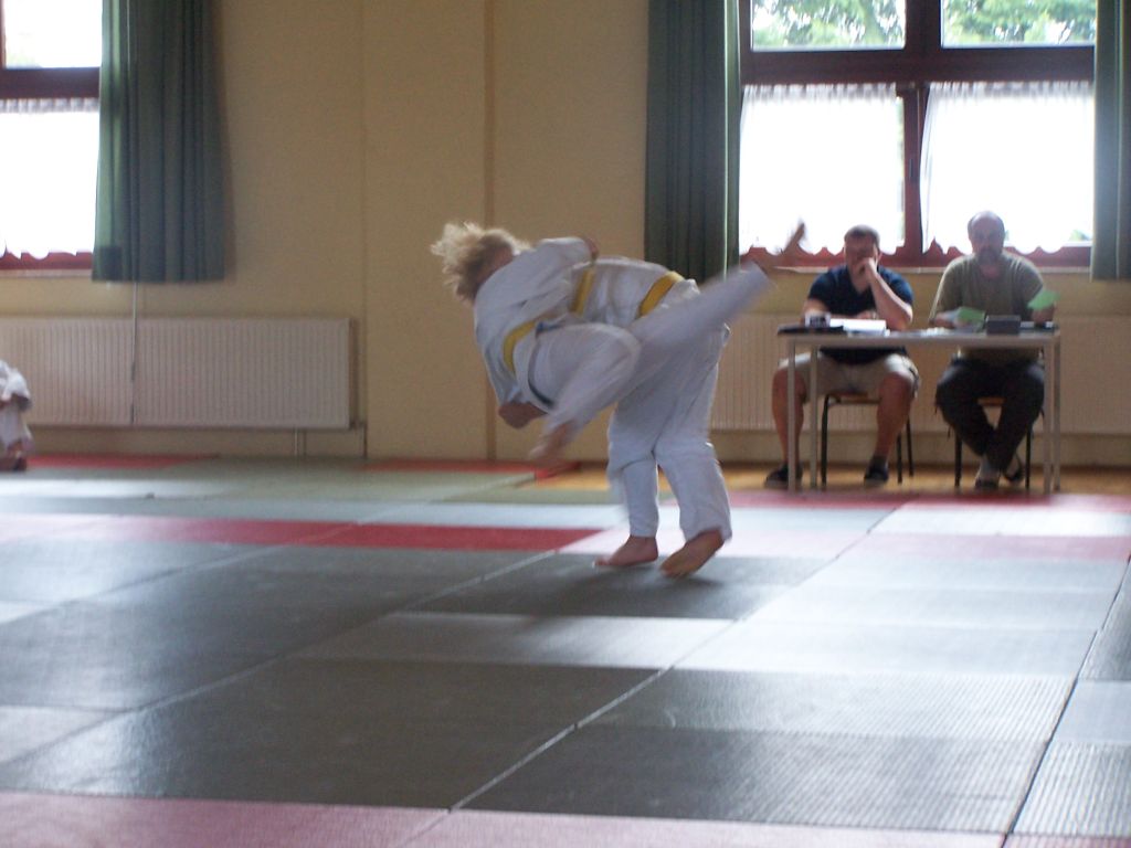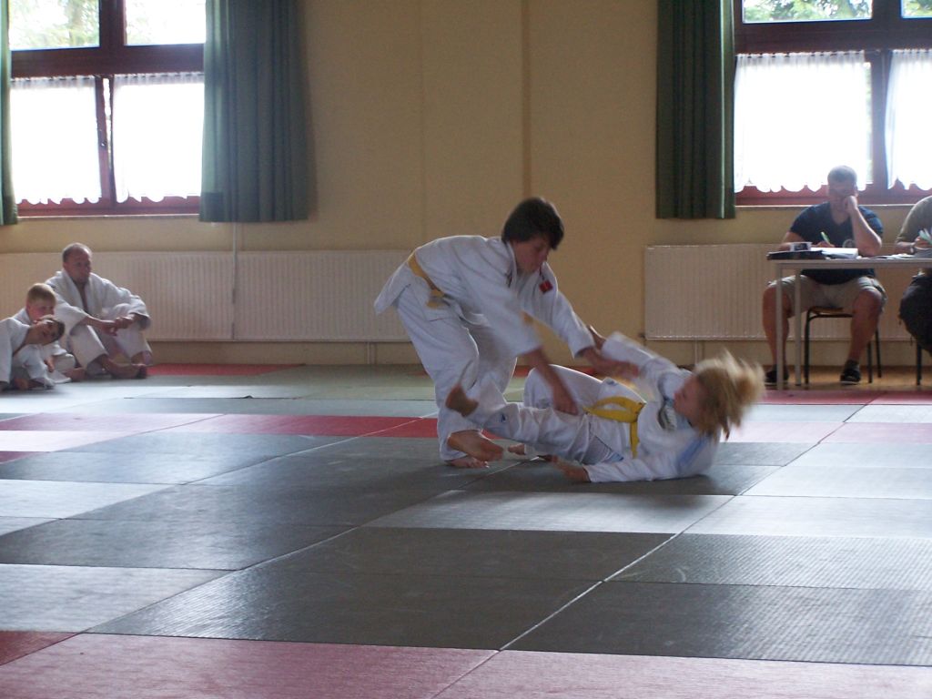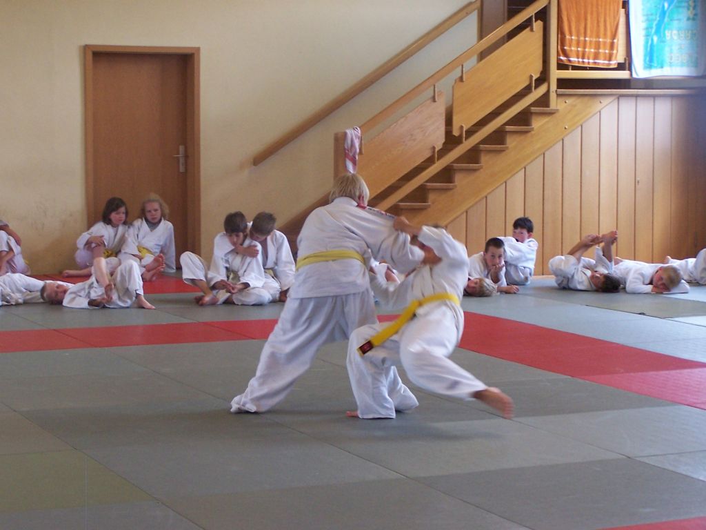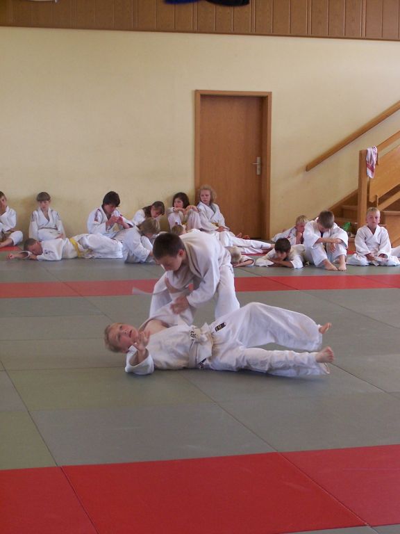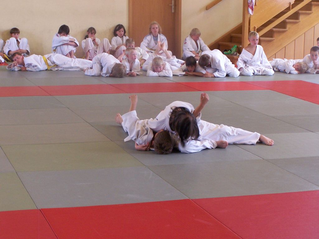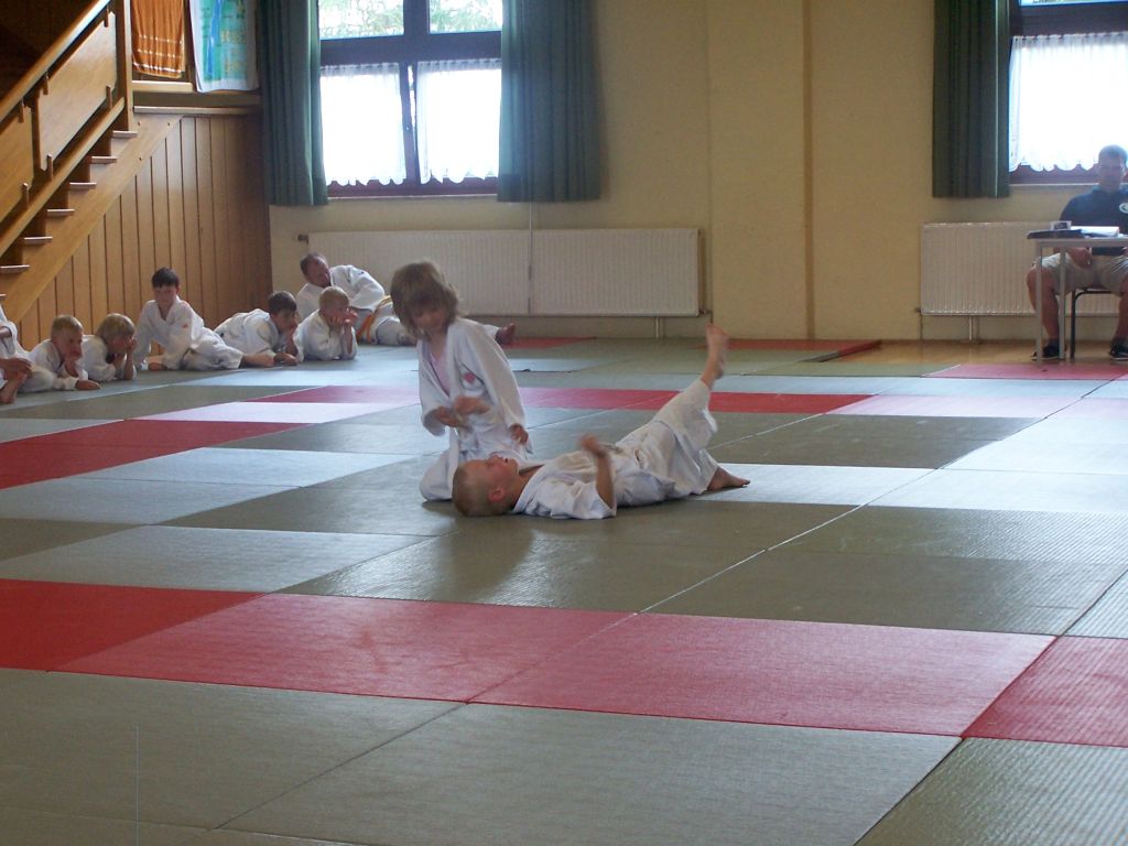 Am 30.06.2009 fand während unseres 13.Trainingslagers die 2. Gürtelprüfung in diesem Jahr statt. Angetreten waren insgesamt 31 Kinder, Jugendliche und Erwachsene Judoka um ihren Leistungsstand zur Erlangung des nächst höheren Kyu-Grades zu demonstrieren. Bei den 11 Prüflingen für den weiß-gelben Gürtel (8.Kyu) und den 4 Prüflingen für den gelben Gürtel (7.Kyu) lief alles gut und die Probanten gingen mit guten Kritiken vom Prüfer Uwe Drechsel (II.DAN) von der Matte. Auch die 8 Teilnehmer der Prüfung zum gelb-orangen Gürtel gaben ihr Bestes. Herausragend war nach Ansicht des Prüfers die Leistung von Theresa Wirbs, welche nicht nur bei den Wurftechniken sondern auch bei der Demonstration der Boden-u. Wettkampftechniken glänzte. Leider lief es in der selben Kategorie für 2 Mädchen und einen Jungen nicht so gut. Sie konnten mit ihrer Leistung den Prüfer nicht überzeugen und dürfen die Prüfung im Oktober noch einmal wiederholen. Die anderen Kyu-Grade wurden ebenfalls mit sehr guten Leistungen abgelegt. Hervorzuheben sind dabei die Darbietungen von Kevin Wächtler (4.Kyu) und Philipp Auerswald (3.Kyu).
