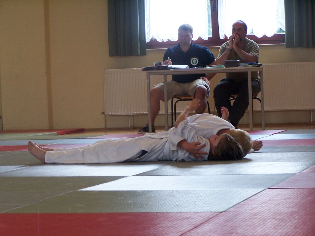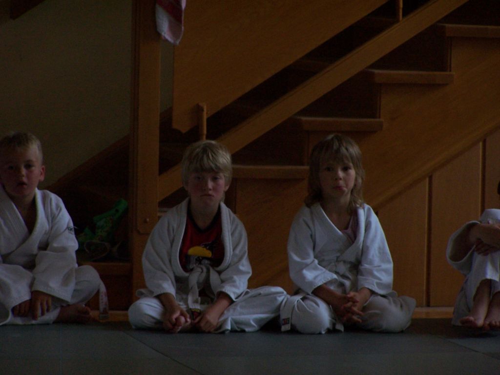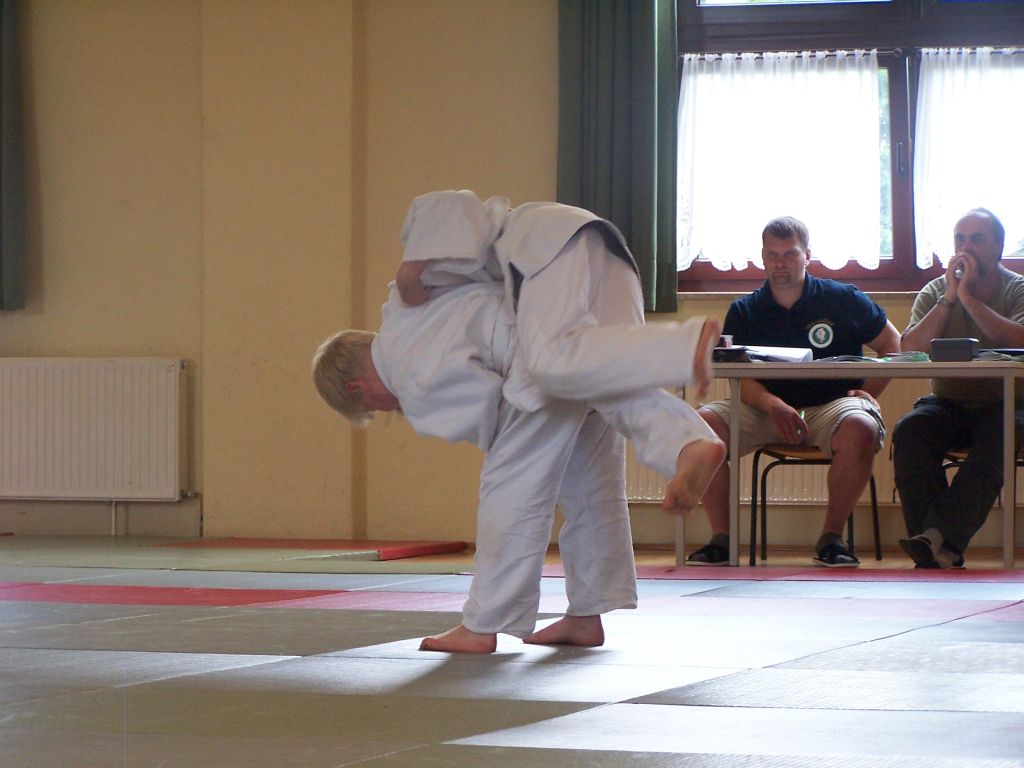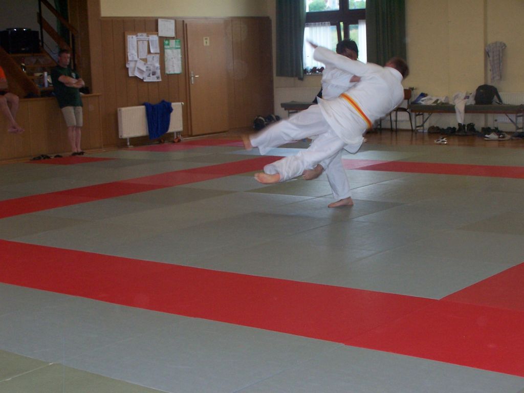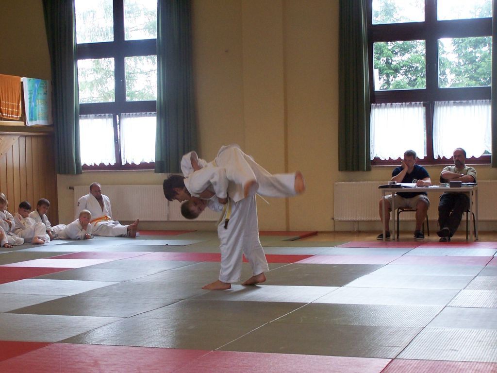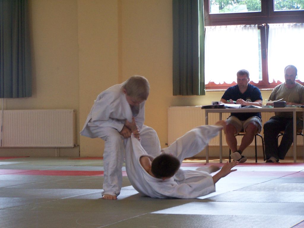 Am 30.06.2009 fand während unseres 13.Trainingslagers die 2. Gürtelprüfung in diesem Jahr statt. Angetreten waren insgesamt 31 Kinder, Jugendliche und Erwachsene Judoka um ihren Leistungsstand zur Erlangung des nächst höheren Kyu-Grades zu demonstrieren. Bei den 11 Prüflingen für den weiß-gelben Gürtel (8.Kyu) und den 4 Prüflingen für den gelben Gürtel (7.Kyu) lief alles gut und die Probanten gingen mit guten Kritiken vom Prüfer Uwe Drechsel (II.DAN) von der Matte. Auch die 8 Teilnehmer der Prüfung zum gelb-orangen Gürtel gaben ihr Bestes. Herausragend war nach Ansicht des Prüfers die Leistung von Theresa Wirbs, welche nicht nur bei den Wurftechniken sondern auch bei der Demonstration der Boden-u. Wettkampftechniken glänzte. Leider lief es in der selben Kategorie für 2 Mädchen und einen Jungen nicht so gut. Sie konnten mit ihrer Leistung den Prüfer nicht überzeugen und dürfen die Prüfung im Oktober noch einmal wiederholen. Die anderen Kyu-Grade wurden ebenfalls mit sehr guten Leistungen abgelegt. Hervorzuheben sind dabei die Darbietungen von Kevin Wächtler (4.Kyu) und Philipp Auerswald (3.Kyu).