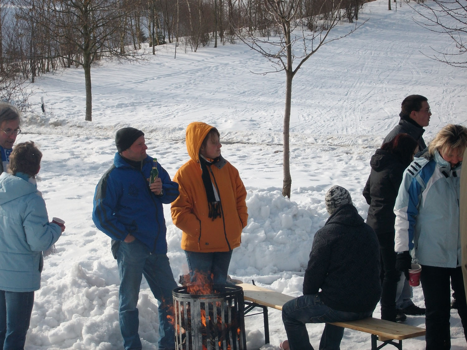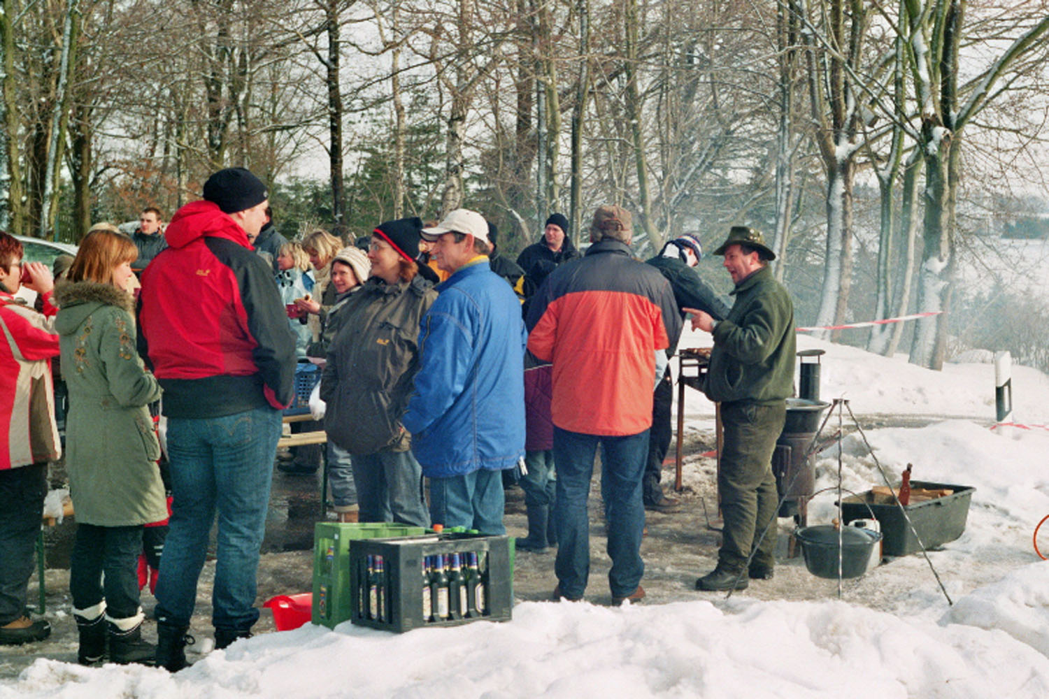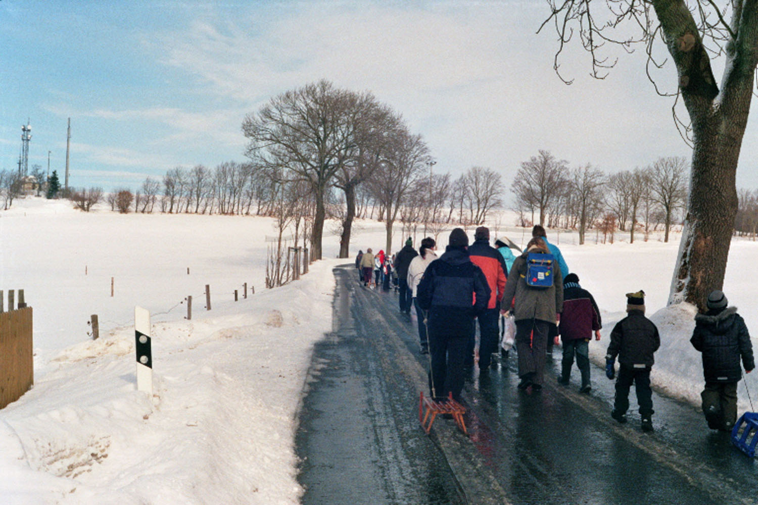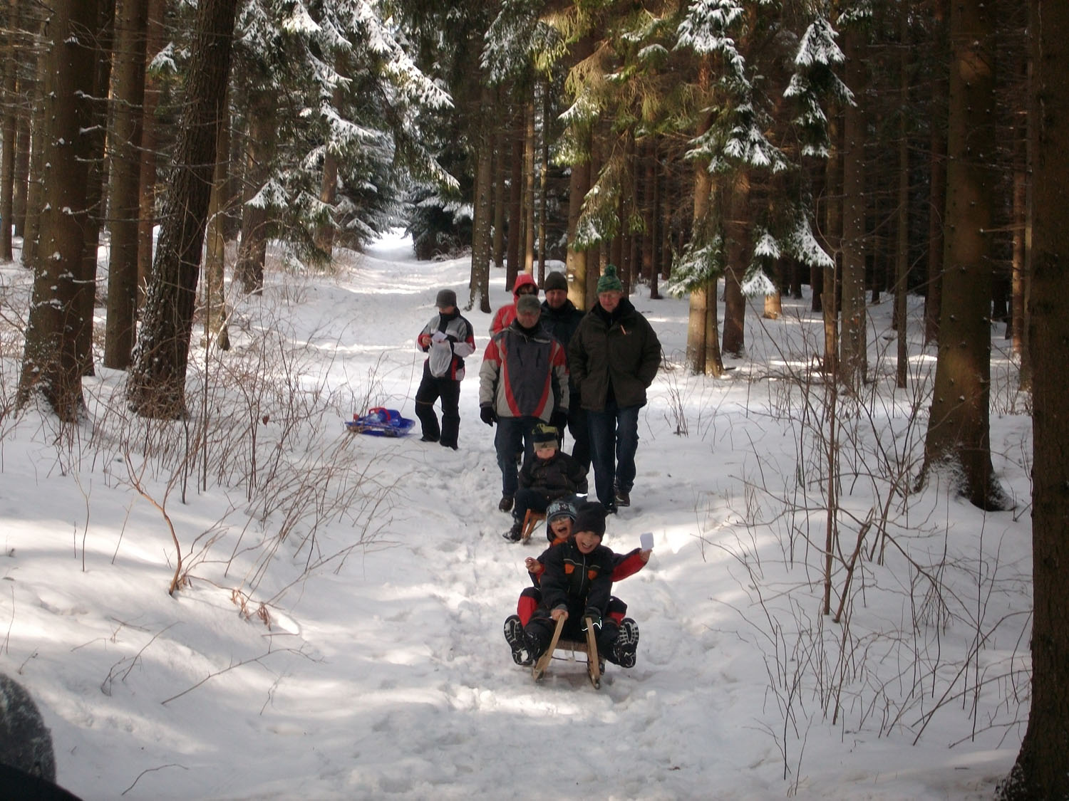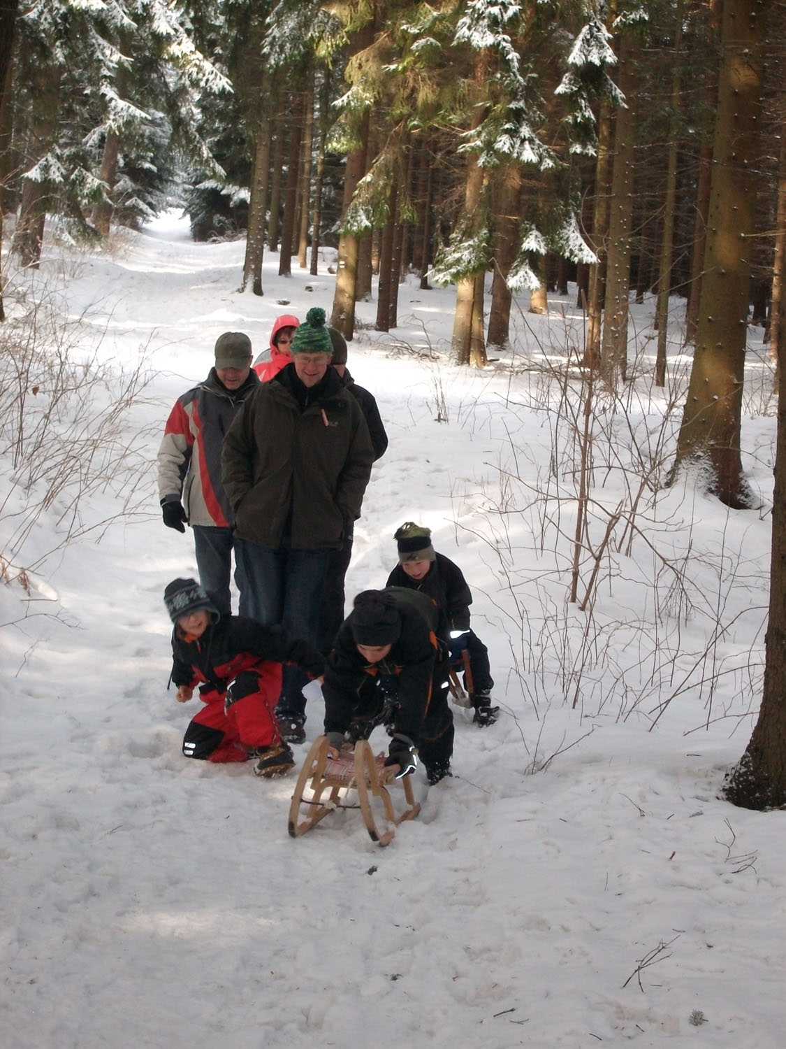 Zur Wanderung versammelten sich fast 50 Judoka und auch viele Eltern vor unserem Dojo, der Turnhalle in Gornau. Mit Schlitten ging es durch den verschneiten Wald bis zur „Dittersdorfer Höhe“. Die Wanderung wurde mit einem „Natursuchspiel“ und einem „Klammerspiel“ recht kurzweilig und alle hatten ihren Spaß. Der Rückweg führte jedoch nicht zur Turnhalle sondern in die Nähe der Gärtnerei in Gornau, wo sie auf einem Parkplatz von anderen fleißigen Judoka und Eltern, welche nicht an der Wanderung teilgenommen hatten, begrüßt wurden. Diese hatten in der Zwischenzeit einen zünftigen Imbiss vorbereitet, welcher von allen dankbar angenommen wurde. So gab es für die jüngeren Teilnehmer unter anderem heißen Tee und Roster und für die Erwachsenen stand zusätzlich Glühwein und Jagertee zur Verfügung. Während sich die Kinder beim Rodeln auf dem nahe gelegenen Rodelberg austoben konnten, gab es zwischen Eltern und Trainern der Judoka einen regen Gedankenaustausch. Den Abschluss der Wanderung bildete dann noch eine zünftige Schneeballschlacht, in welcher es ganz schön zur Sache ging.