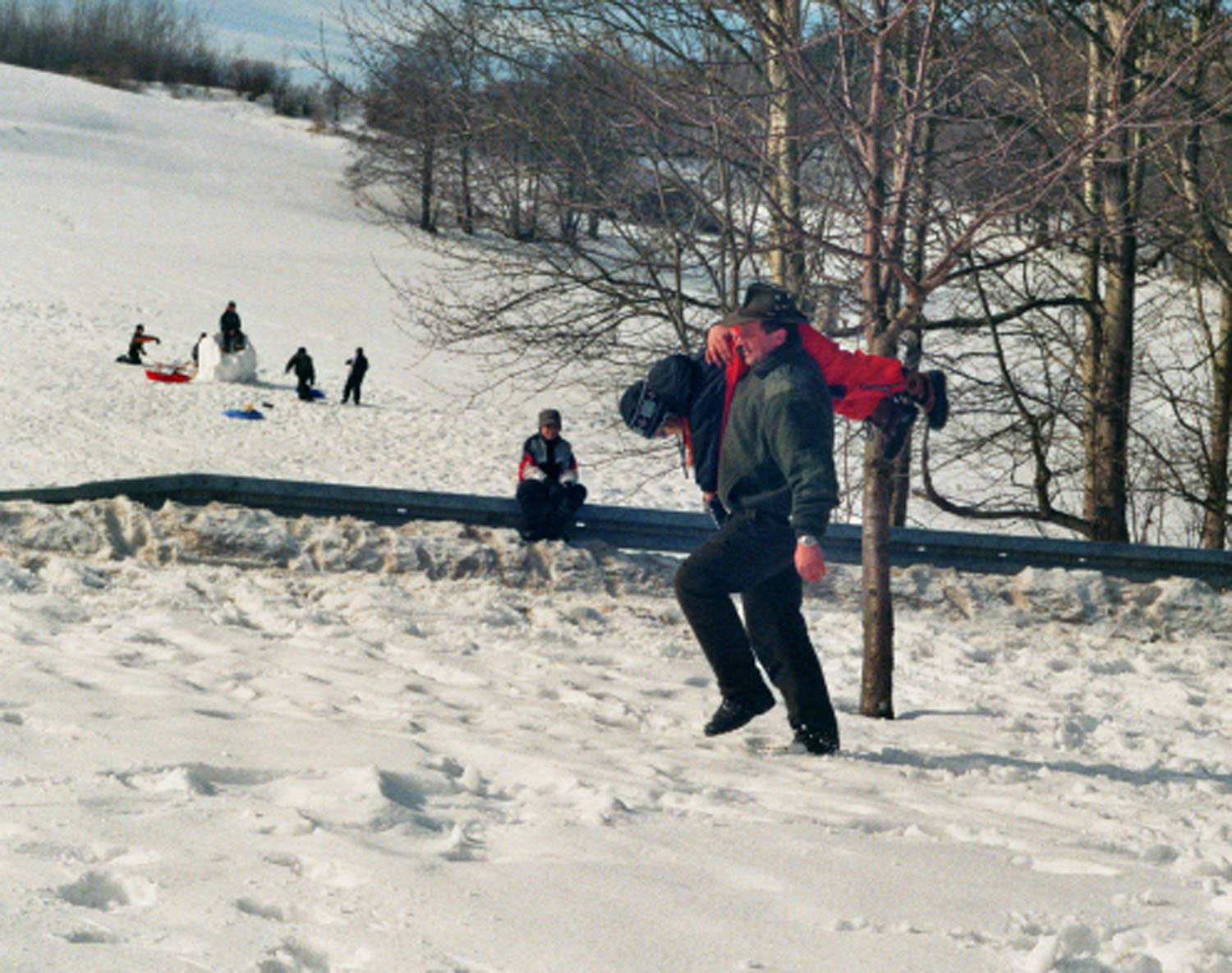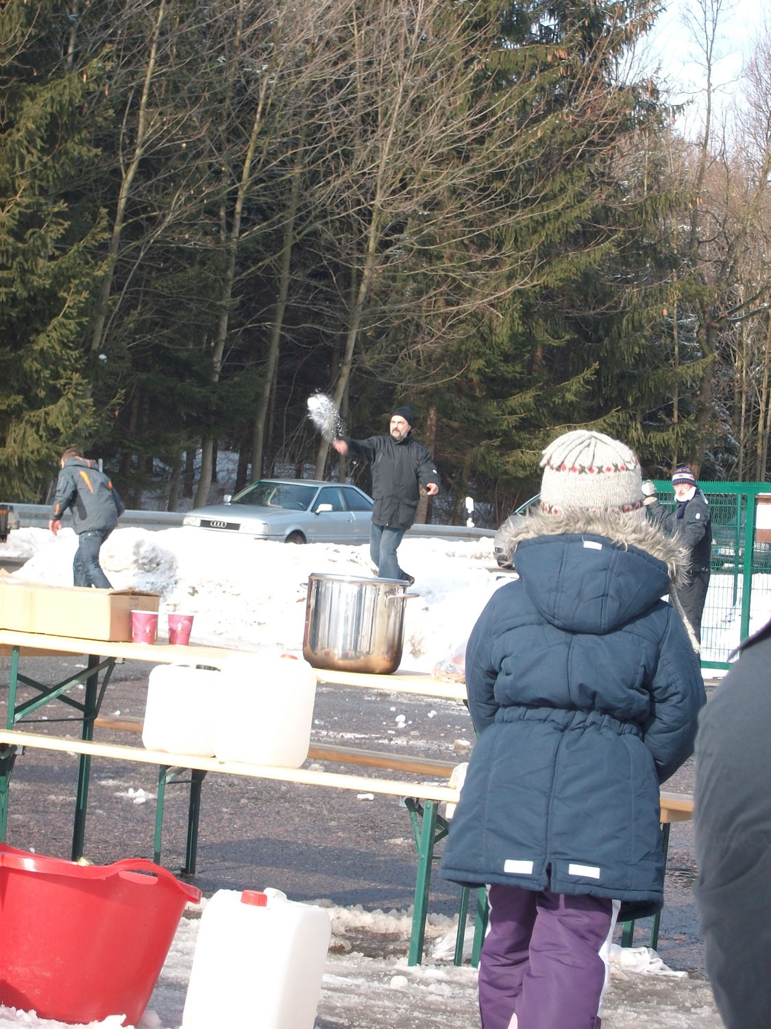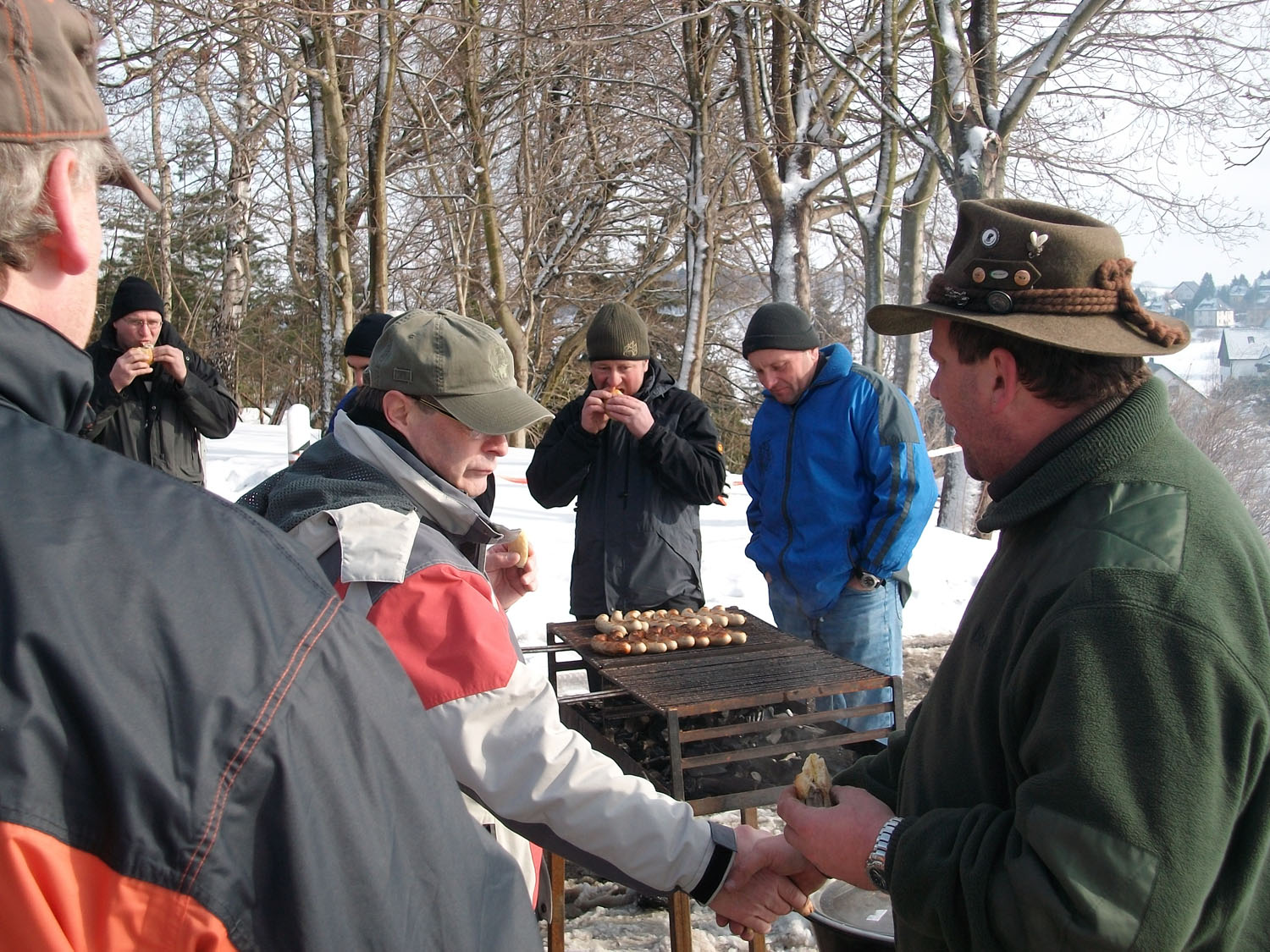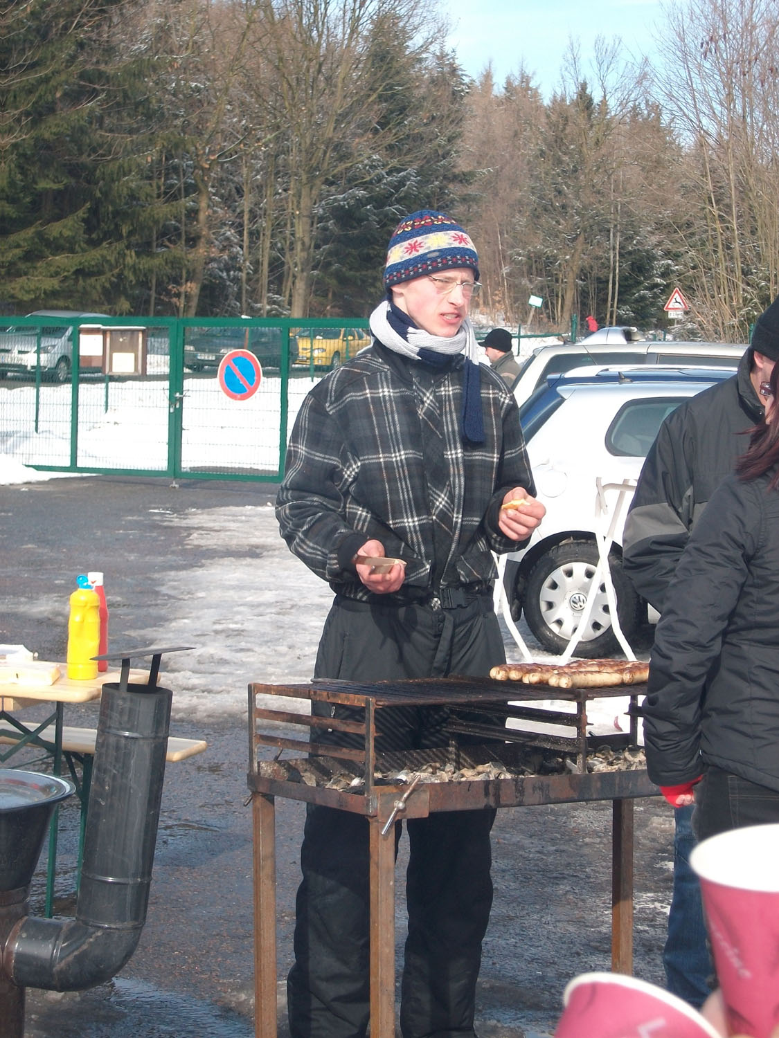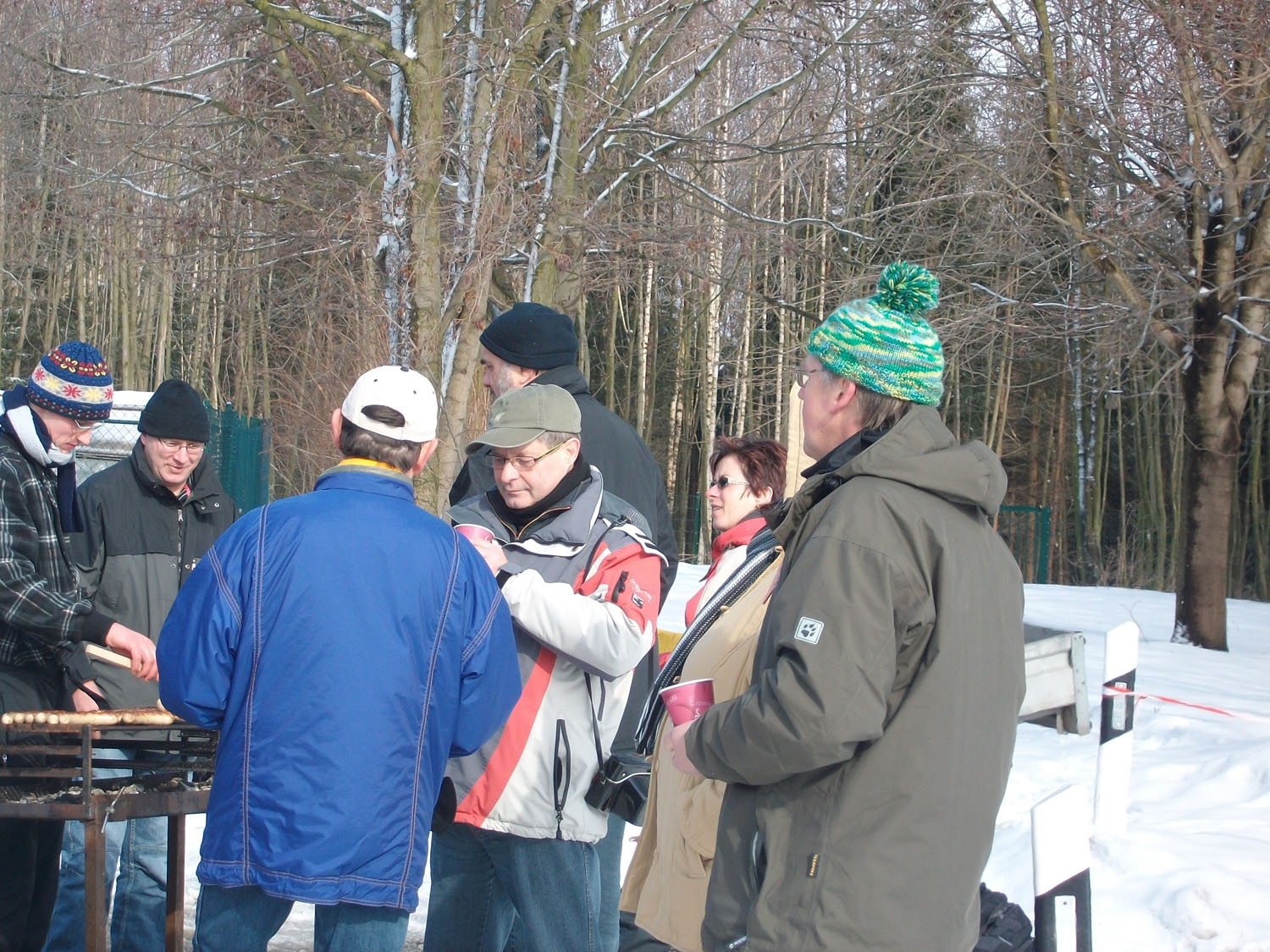 Zur Wanderung versammelten sich fast 50 Judoka und auch viele Eltern vor unserem Dojo, der Turnhalle in Gornau. Mit Schlitten ging es durch den verschneiten Wald bis zur „Dittersdorfer Höhe“. Die Wanderung wurde mit einem „Natursuchspiel“ und einem „Klammerspiel“ recht kurzweilig und alle hatten ihren Spaß. Der Rückweg führte jedoch nicht zur Turnhalle sondern in die Nähe der Gärtnerei in Gornau, wo sie auf einem Parkplatz von anderen fleißigen Judoka und Eltern, welche nicht an der Wanderung teilgenommen hatten, begrüßt wurden. Diese hatten in der Zwischenzeit einen zünftigen Imbiss vorbereitet, welcher von allen dankbar angenommen wurde. So gab es für die jüngeren Teilnehmer unter anderem heißen Tee und Roster und für die Erwachsenen stand zusätzlich Glühwein und Jagertee zur Verfügung. Während sich die Kinder beim Rodeln auf dem nahe gelegenen Rodelberg austoben konnten, gab es zwischen Eltern und Trainern der Judoka einen regen Gedankenaustausch. Den Abschluss der Wanderung bildete dann noch eine zünftige Schneeballschlacht, in welcher es ganz schön zur Sache ging.