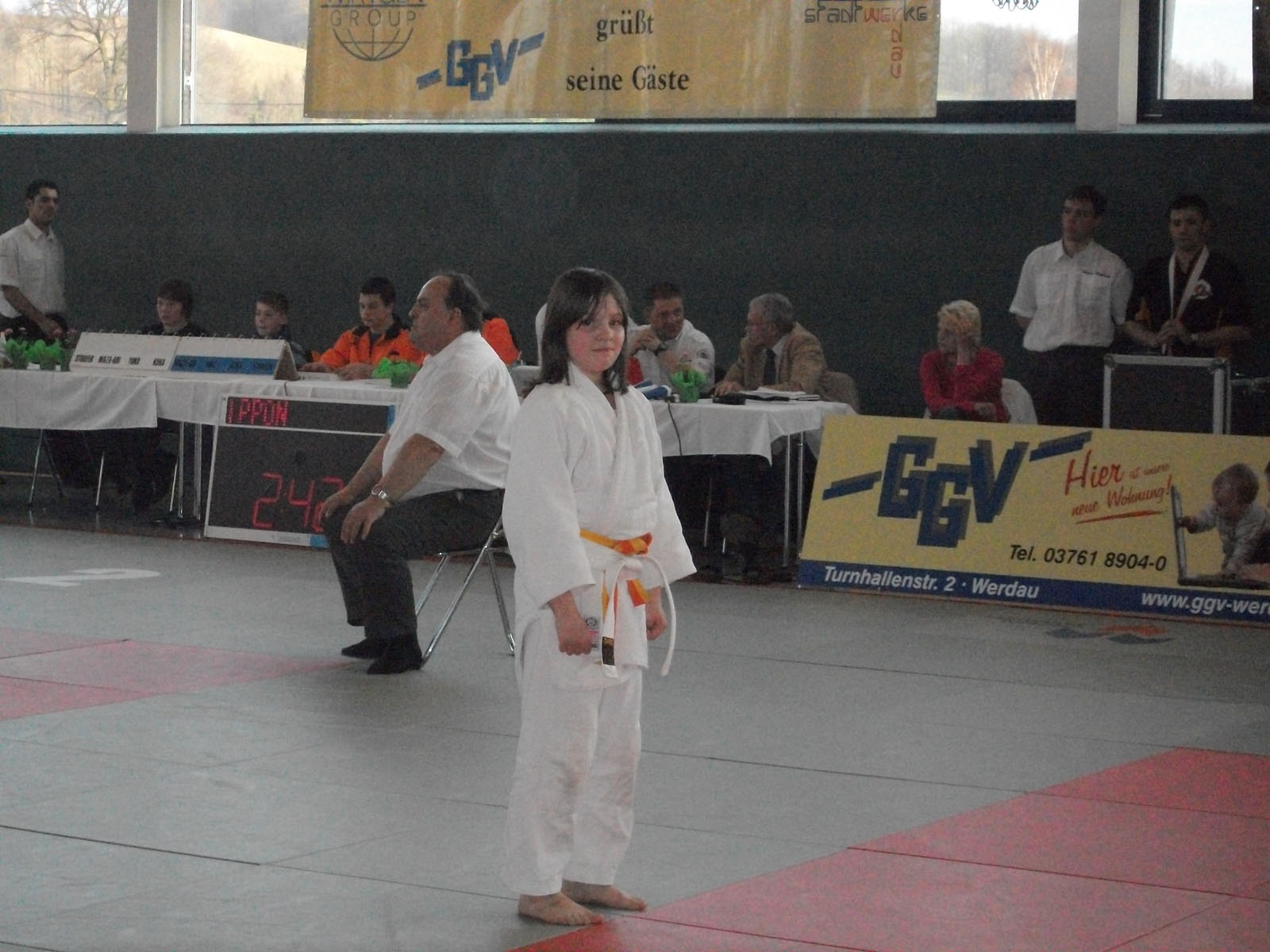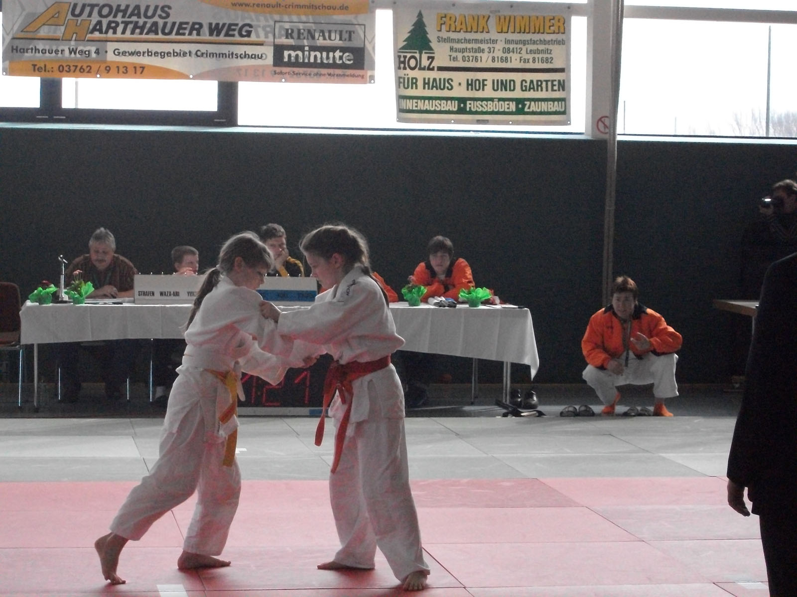 Bei den Mädchen der U12 zeigte Jenni (-40kg) von Anfang an Biss und Siegeswillen und schaffte es damit bis zum Einzug ins Finale. Hier traf sie auf eine Judoka aus Annaberg, welche auch zu schaffen gewesen wäre, so ihr Trainer, Reimar Sesser. Die Annabergerin war spezialisiert auf Fußtechniken und mit einer Solchen brachte sie die Gornauerin ins Straucheln, konnte dann am Boden mit einer Festhalte abschließen und sicherte sich vor unserer Jenni Gold.
