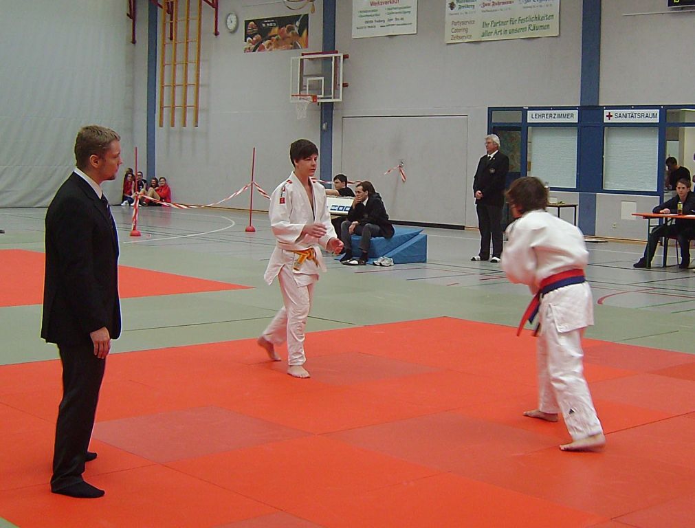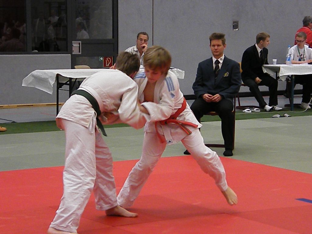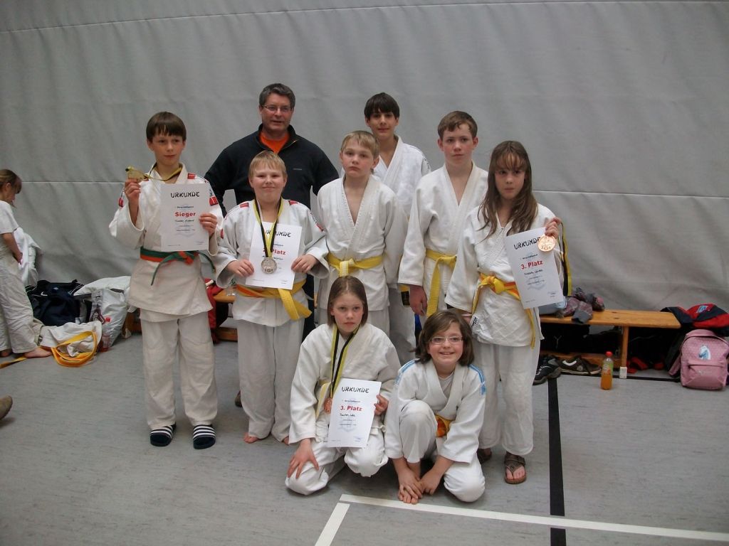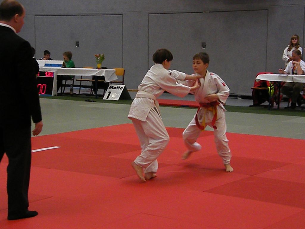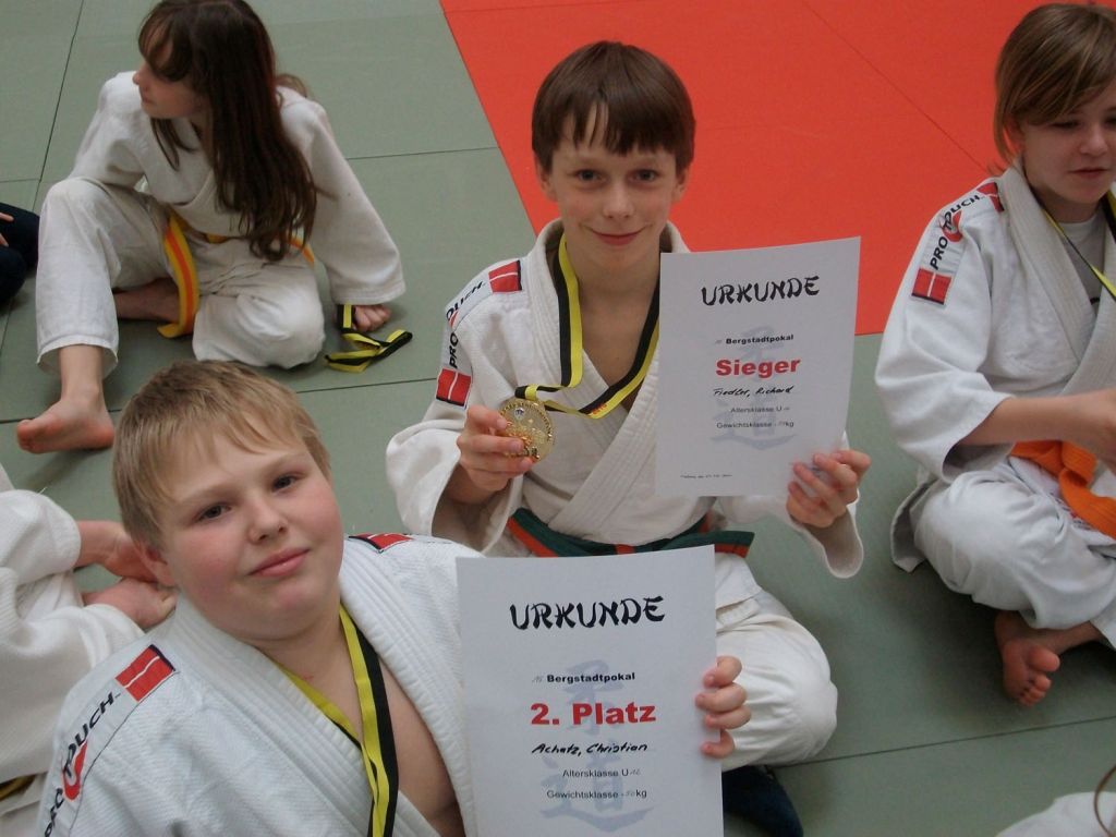 Die 13.Auflage des Freiberger Bergstadtpokals startete am vergangenen Wochenende, 27./ 28.03.2010, in der Heubner-Halle in Freiberg. Ausrichter war, wie in den vergangenen Jahren auch, der BSC Freiberg. Am Sonnabend standen die Mädchen und Jungen der Altersklassen U12 und U14 auf der Matte. Herausragend war zum wiederholten Mal Richard Fiedler (-37kg). Er beendete alle seine Kämpfe als Sieger und sicherte sich damit Gold. Eine hervorragende Leistung zeigte auch Christian Achatz (-50kg), welcher sich über eine Silbermedaille freuen durfte. Lea Reuter und Luisa Noack (beide -33kg), sowie Anton Bartel trugen mit jeweils Bronze zum guten Abschneiden der Gornauer Judoka bei. Pechvogel des Tages war auf Gornauer Seite Georg Müller (-42kg). Bedingt durch seinen Nachnamen wurde beim Aufrufen vergessen den Verein mit zu nennen und das Pech wollte es, dass in dieser Gewichtsklasse 2xMüller am Start waren und dass der falsche Müller auf die Matte ging. Dieser Irrtum wurde leider erst relativ spät bemerkt, sodass keine Korrektur der Kämpfe mehr möglich war.